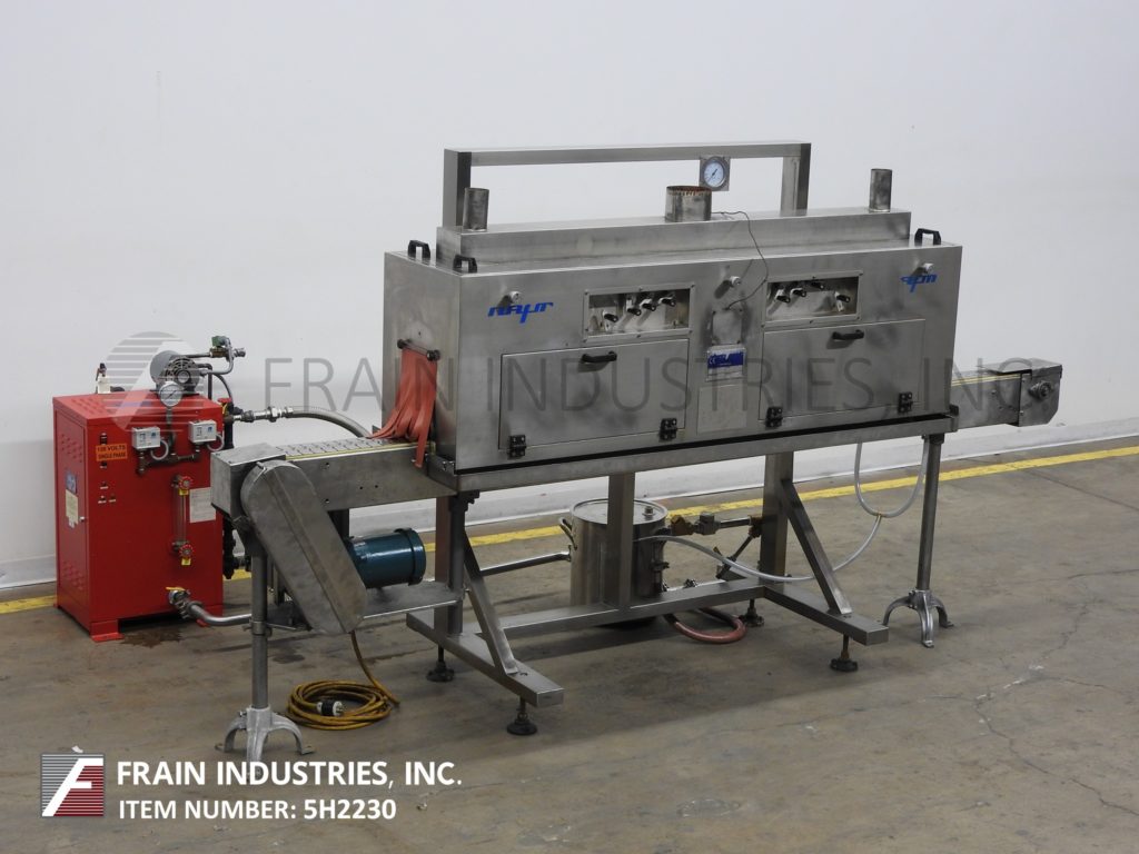 返回所有设备NAFM,型号YS-130L,不锈钢蒸汽收缩隧道。能够处理圆形,方形,椭圆形和其他不规则形状的容器。配备5英寸宽x 12“高x 80”长隧道,(12)套可调蒸汽喷嘴,(6)流量控制,1“蒸汽供应的NPT连接,安装在高度可调”H“风格基座上将32英寸“到45”的适应线路高度。