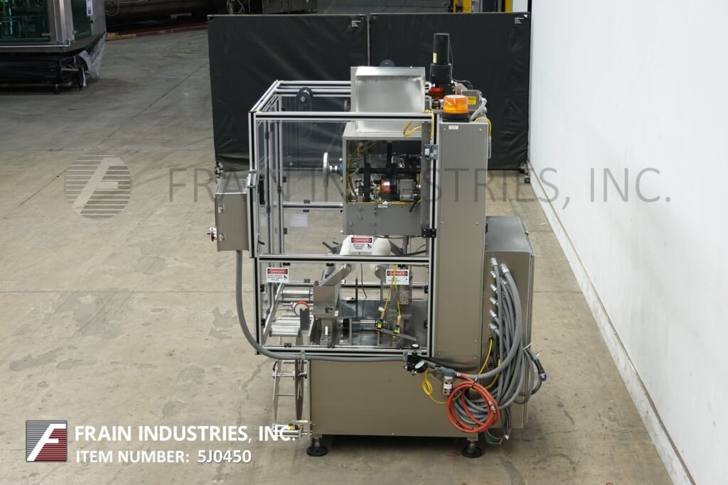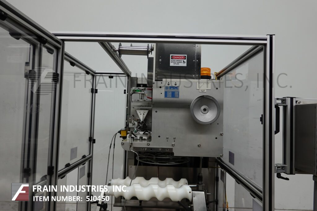 回所有设备PDC模型75ERL自动电子注册超长袖贴标签器评分从50分钟至225箱-视材料和应用而定无渣钢搭建区位范围:3/83配有双24长片蠕虫螺丝填充,22直径膜卷线,分片表,刀割除,低素/无素传感器并印制胶片编程手轮慢跑控件板有PLC控制器HMI和jug/run开关并用e-stop按键开关/驱动停止电源挂在(4)腿架上并加锁安全卫士
