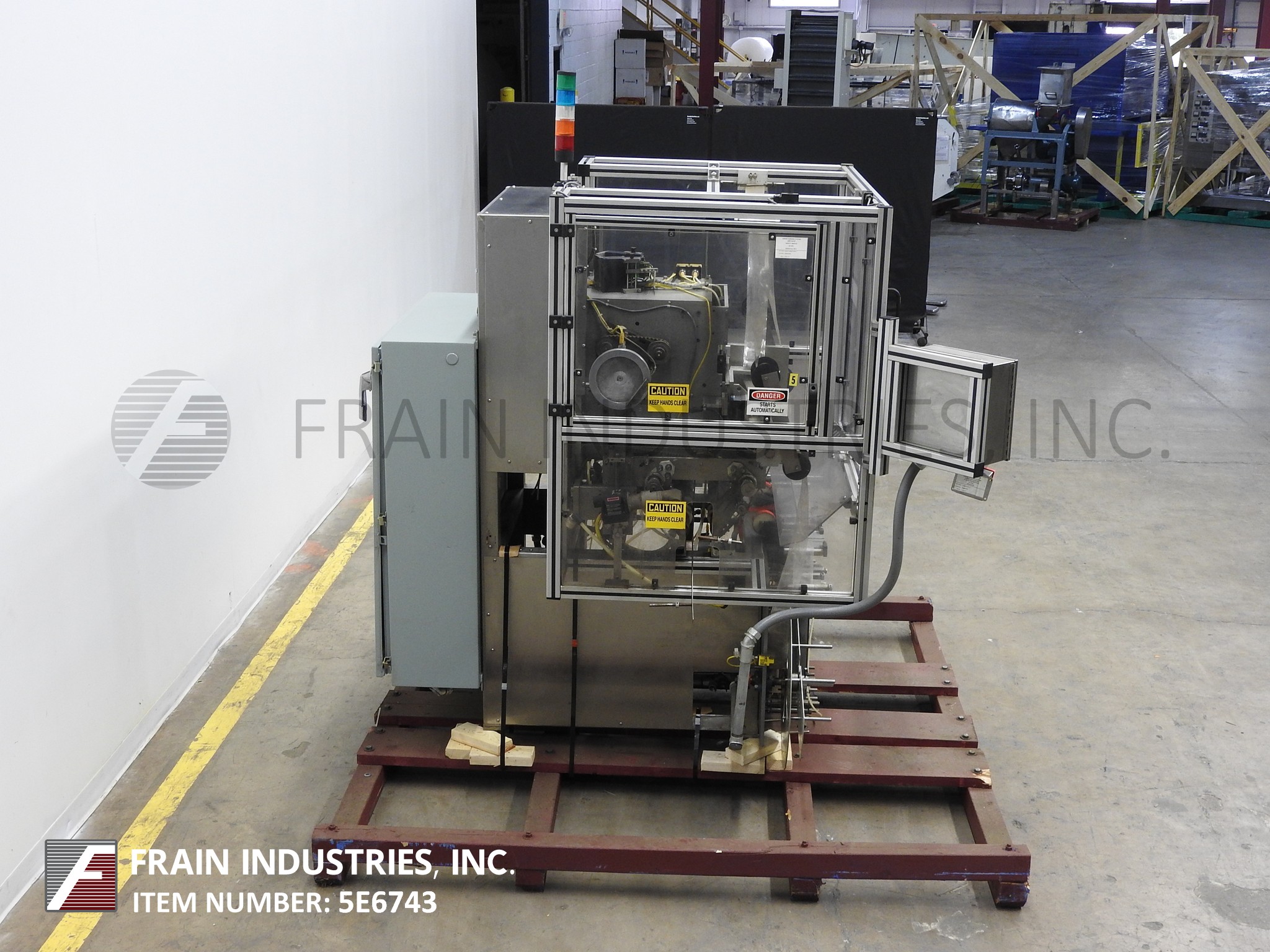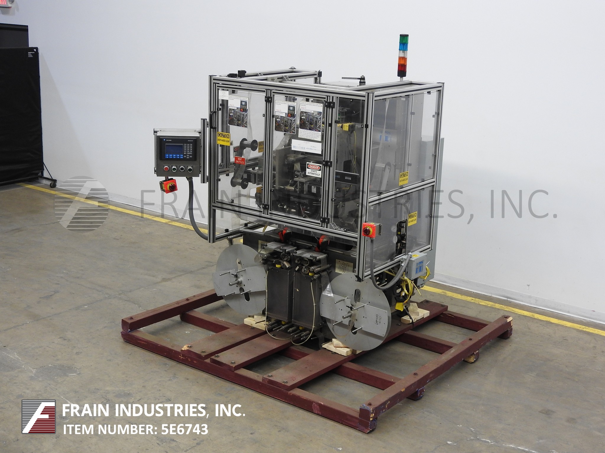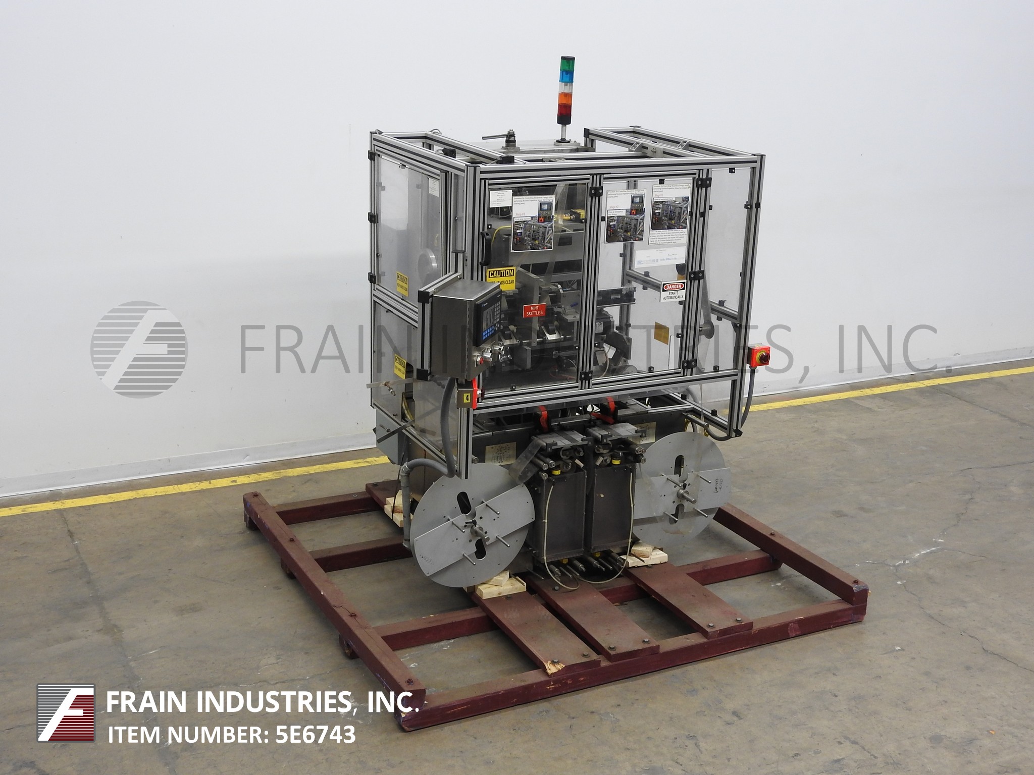 返回所有设备PDC型号90-2E,自动,高速,双头/双卷轴颈带/套筒涂抹器从50到400个容器的每分钟合并 - 取决于材料,应用和机器配置。尺寸范围:直径3/8“至3”;高度5/8“至5”(具有适当的凹部)。120mm最大延伸平带宽度,每个应用的最小扁平带宽。配备双头进行连续操作(一个跑步的载荷)双时序螺钉,双重电影展开,低胶片传感器,带预收缩,没有容器/无频带传感器,静电消除器,Siko,Siko仪表,步进乐队饲料驱动器。控制面板与Allen Bradley PLC和面板视图操作员界面。附加功能包括双速功能(感应产品进给体积,并相应地调整机器速度)和lexan保护。安装在(4)平整腿基框架上。