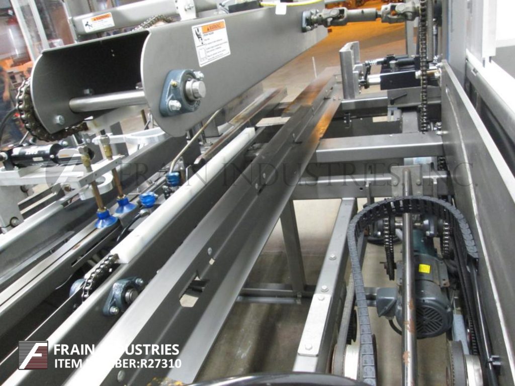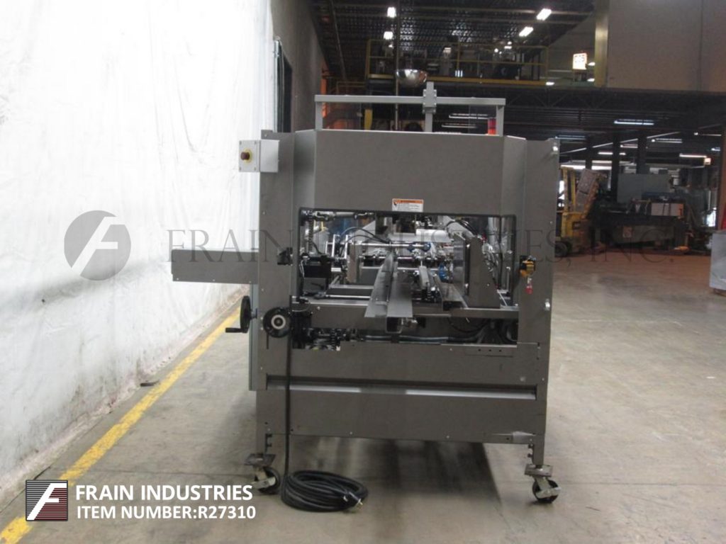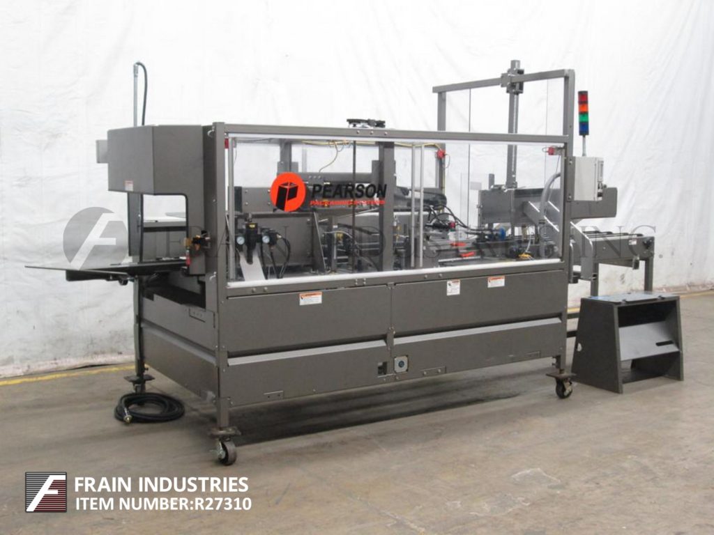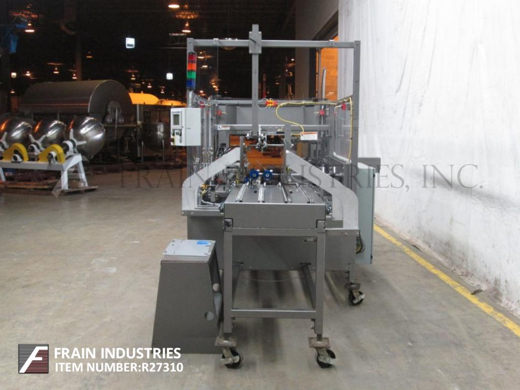 返回所有设备Pearson,型号CE35-G,自动,直到左,壳体竖立器和热熔胶底部封口机。评分为每分钟5至30例 - 取决于材料和应用。案例尺寸范围:10“至20”的长度;5“宽度为16”,深度为8“至16”。配备58“长x 19”宽(4)链自动空白盒杂志,吸盘式PIC n处和柜台架设平方系统,顶部保持下降,48英寸长的扼流圈。手曲柄高度和宽度可调壳体进料部分,顶部挡板升降机和后翼片闭合和犁,Nordson热熔胶系统沃特单RAM臂压缩部分。A / B PanelView加600触摸屏控制器带按钮开始/停止/ e-STOP按钮控制和Statis Light Bar。安装在重型底架与互锁安全防护。