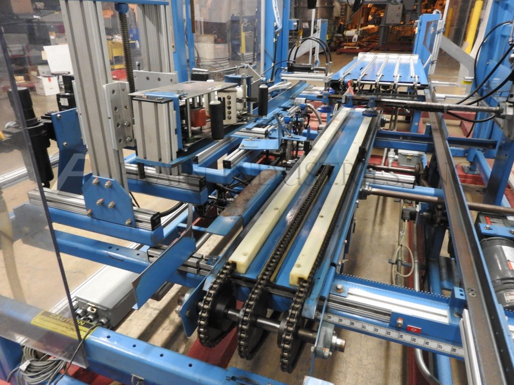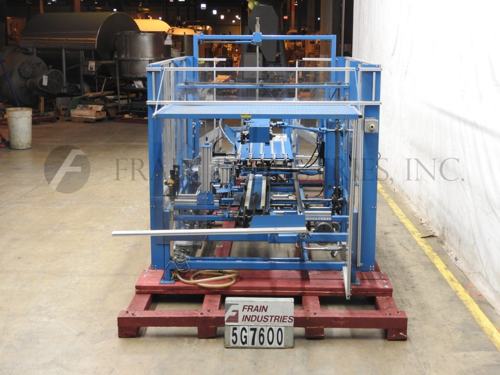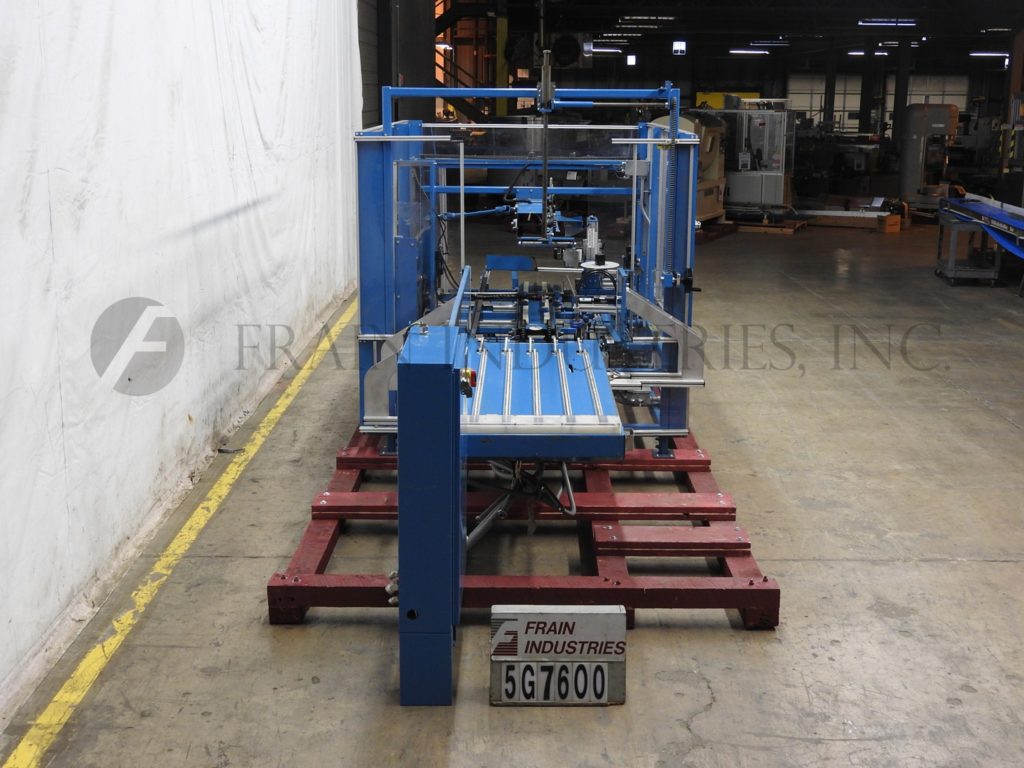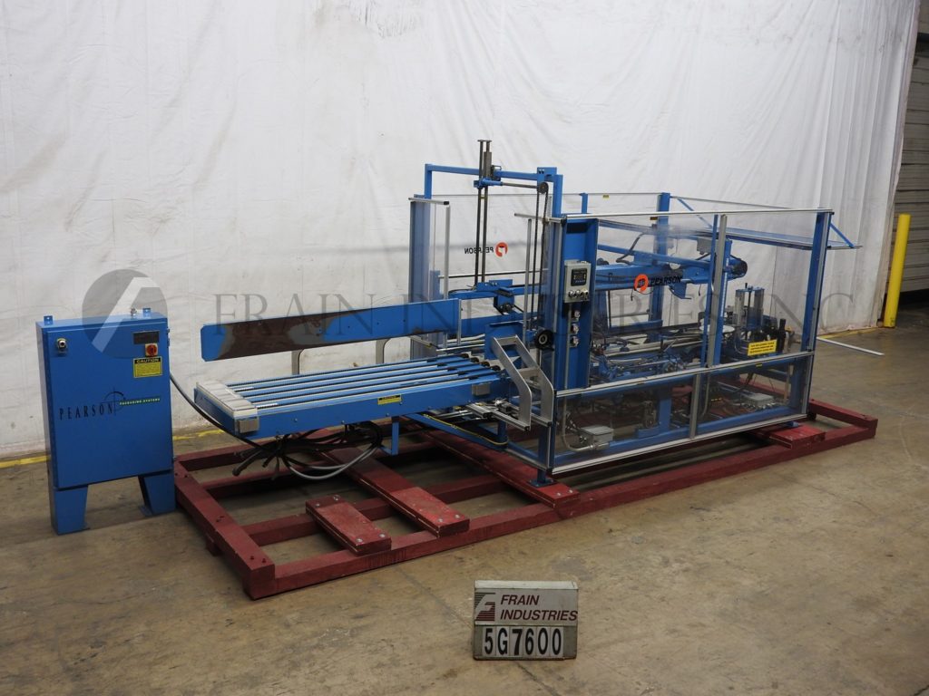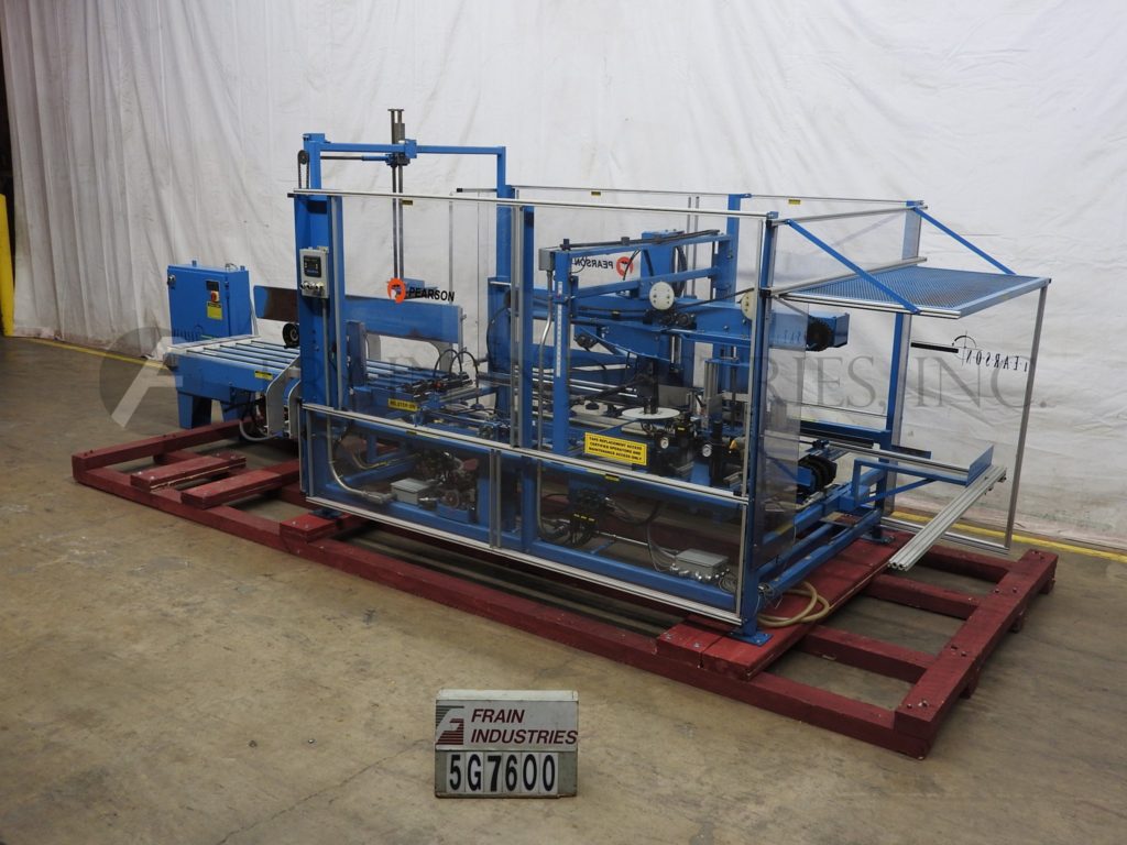 返回所有设备皮尔逊,型号CE35,自动,箱子安装和底部胶带封口机。每分钟5 - 30个病例-取决于材料和应用。箱体尺寸范围:10"至30"长度;宽度9"至24",深度10"至26"。配备81"长x 24"宽(4)链自动空白盒杂志,吸盘pic n的地方和箱安装方形系统与顶部控制和75"长节流饲料。手曲柄高度和宽度可调的情况下,饲料部分,顶部皮瓣升降机和后方皮瓣更接近犁与3“宽底部磁带头。A/B PanelView 300微触屏控制器,具有启动/停止/ e -停止按钮控制。安装在重型基础框架与联锁安全防护。