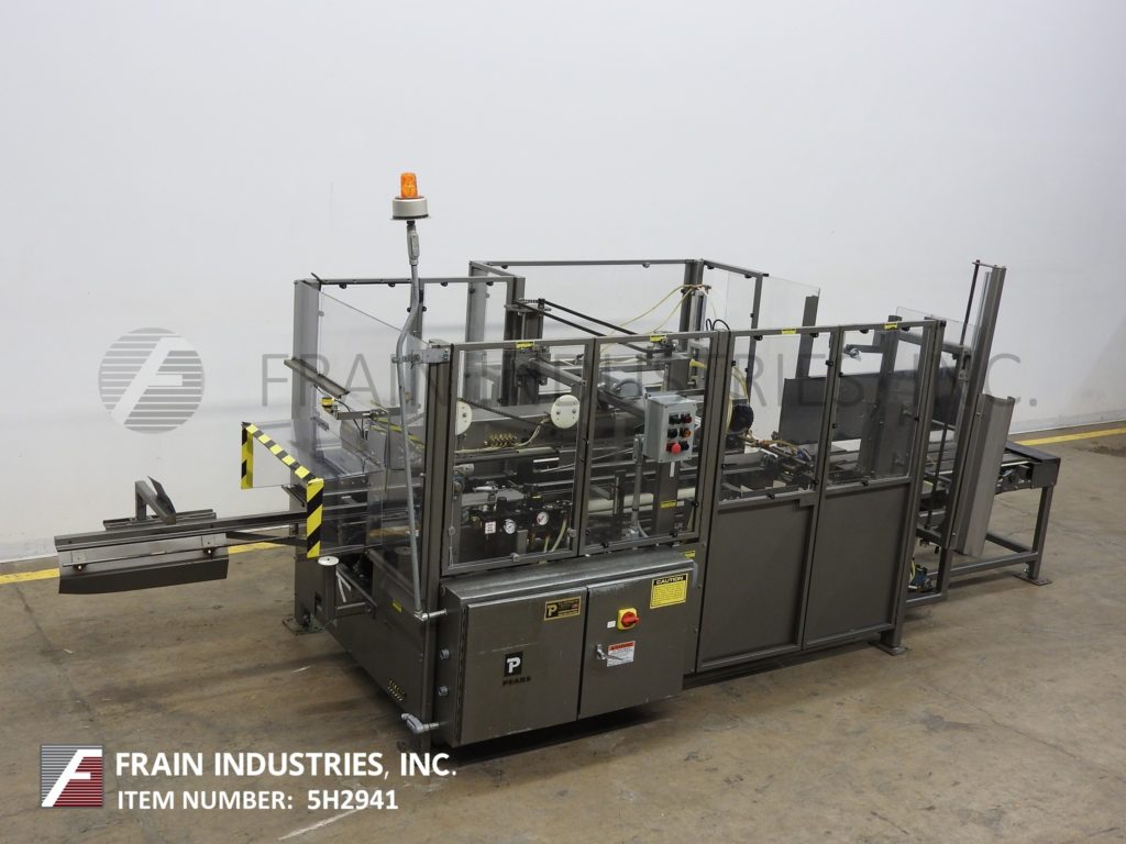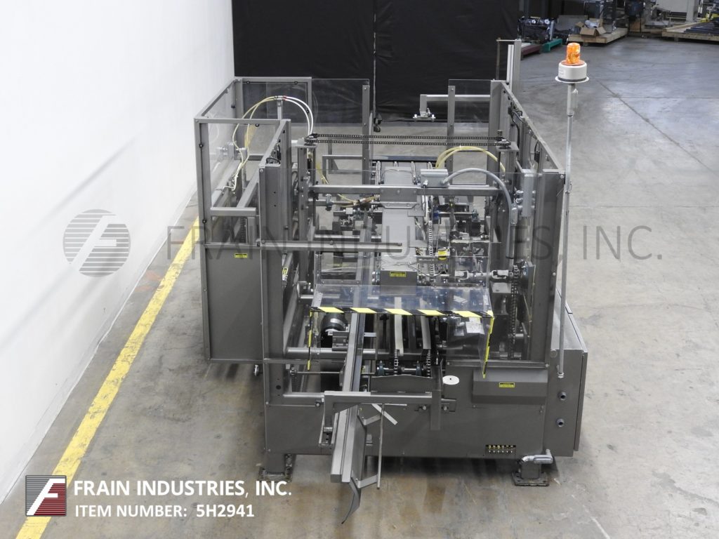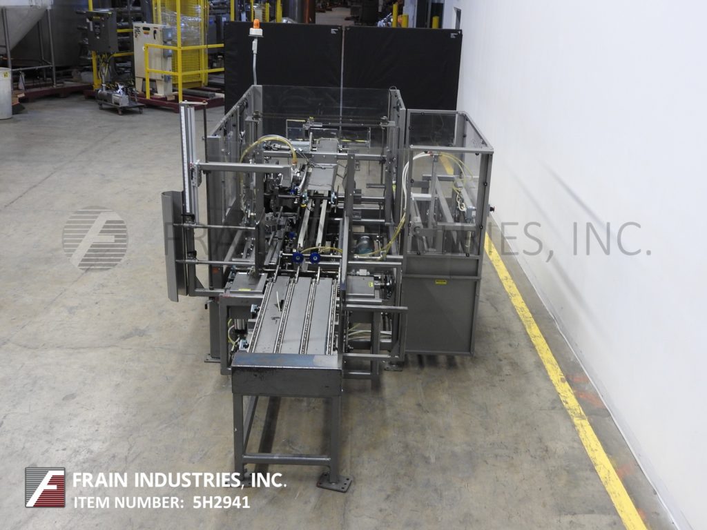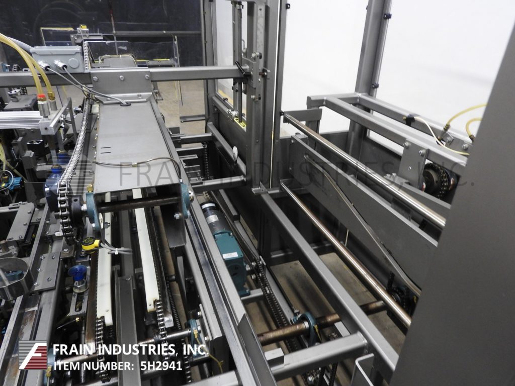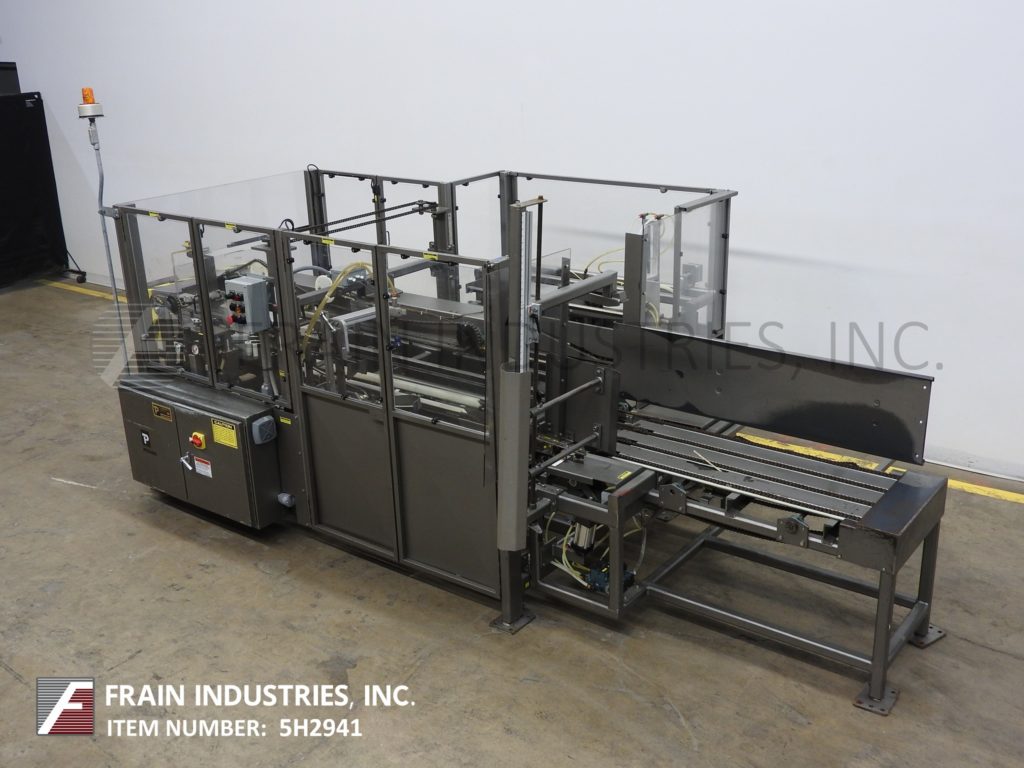 返回所有设备皮尔逊,型号R23501,自动,箱子安装和磁带底部封口机。根据材料、应用和机器配置的不同,每分钟可使用1 - 30箱。外壳尺寸范围:8¾“至23½”长度;宽度为5"至16",深度为8¼"至21"。配备56“长x 18”宽(4)链自动空白杂志,吸盘图片n平方装配系统,75年“双拖着长链输送机、单上面拖着链与前按住,皮瓣举升机,后皮瓣意见和犁和3 m Accuglide 2”胶带封口。控制面板有一个AB控制器和按钮启动/停止/慢跑。安装在重型基础框架与联锁安全防护。