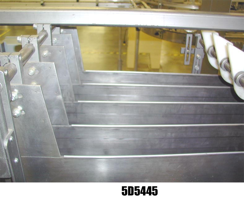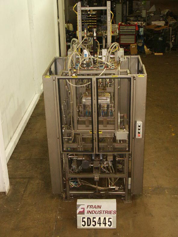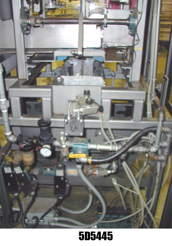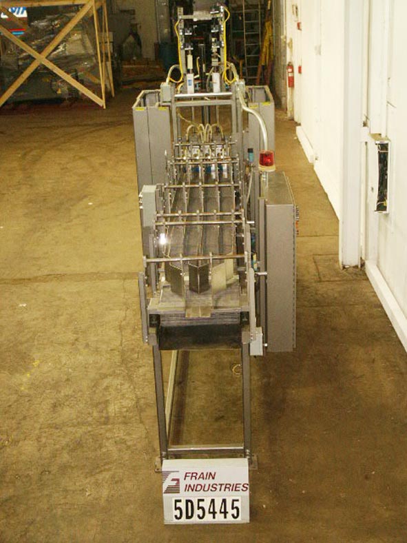 返回所有设备皮尔森P3103型,自动,下降箱包装能力的速度从5至30箱每分钟-速度取决于材料,应用和机器配置。案例:达到??"L x (12" - 26")W x up to ??"114"长x 20"宽的进料产品输送机,气动顶部瓶保持,16"长x 22"宽的瓶网格,气动产品下推到转移网格,加载时2链箱驱动,可编程控制器,E-stop,状态指示灯,电气联锁屏障保护。安装在钢-油漆框架。最后运行一个2 × 4包装模式4"直径的瓶子。