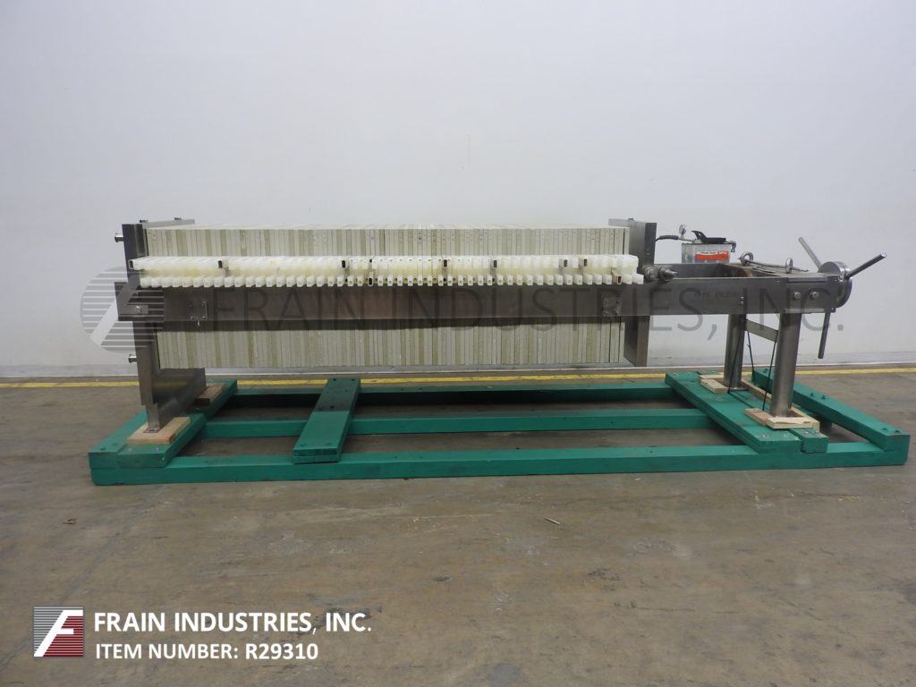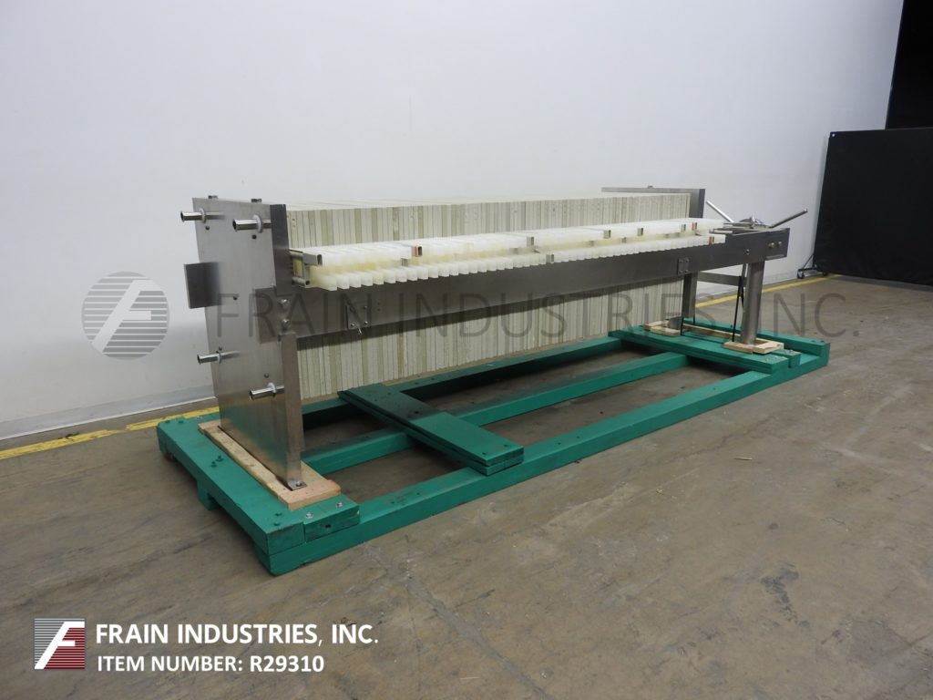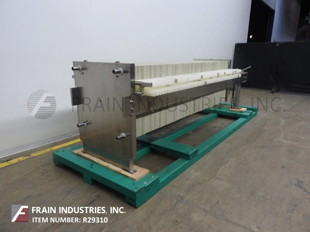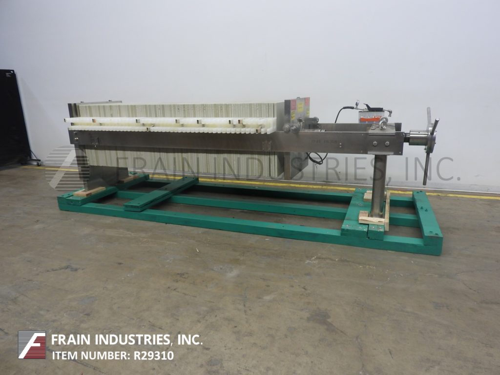 返回所有设备Perrin / Evoqua水技术,水平,不锈钢,侧杆板和框架过滤器压机。每小时产品的卷 - 取决于材料,应用和机器配置。配备(50)24“x 24”x 1“方形饼板,滤饼容量为16英尺和(51)24”x 24“过滤面积为200英尺,(4)2”OD /1½“ID Tri-Clamp入口/插座,手曲柄滤芯封闭和空气液压整理封闭件。安装在(4)腿基架上。