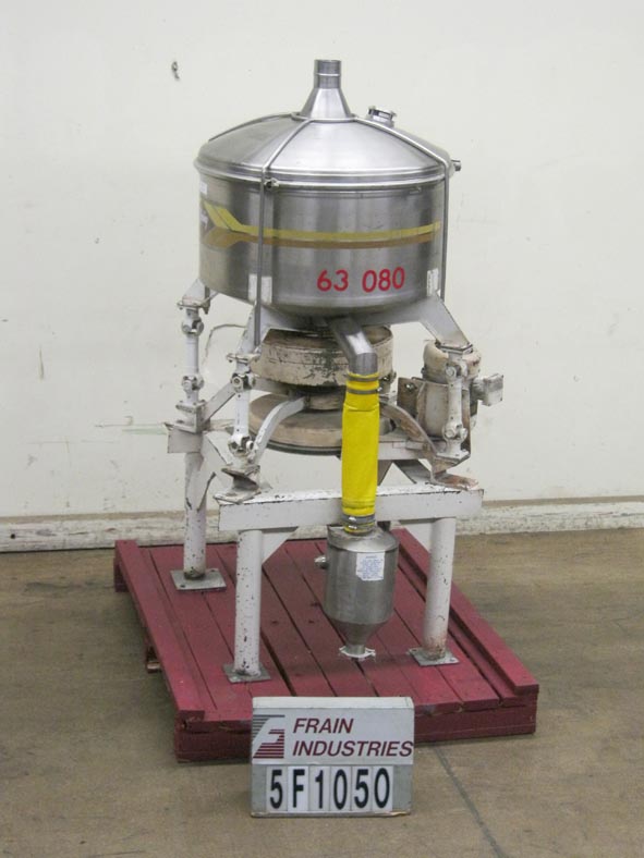 返回所有设备Pfening 36“内联,4甲板,36英寸”直径,气动,穿过压力筛分器。屏幕面积:15.3英尺。压力等级:高达15 psi;最多15英寸。HG最大真空。室尺寸:36“直径x 16”直壁。配备两台3“直径顶部中心端口,304不锈钢外壳,铝屑和两个3”直径侧底底放电。