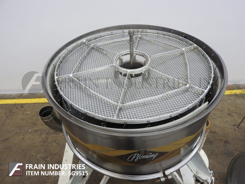 返回所有设备强化模型36"内联,不锈钢,4甲板,36"直径气动,内联流动通过压力筛每小时的产品磅数-取决于材料和应用。屏幕面积:15.3英尺²。额定压力:可达15psi;高达15英寸。Hg最大的真空。腔体尺寸:36"直径x 16"直壁。配备(2)3"外径顶部中心端口,不锈钢外壳,铝甲板,和4"外径侧底卸到尾集装箱有7"外径侧端口和9"地板间隙安装在(4)腿基础框架。