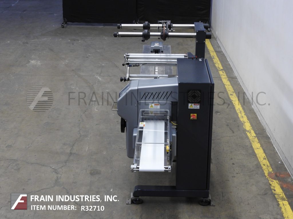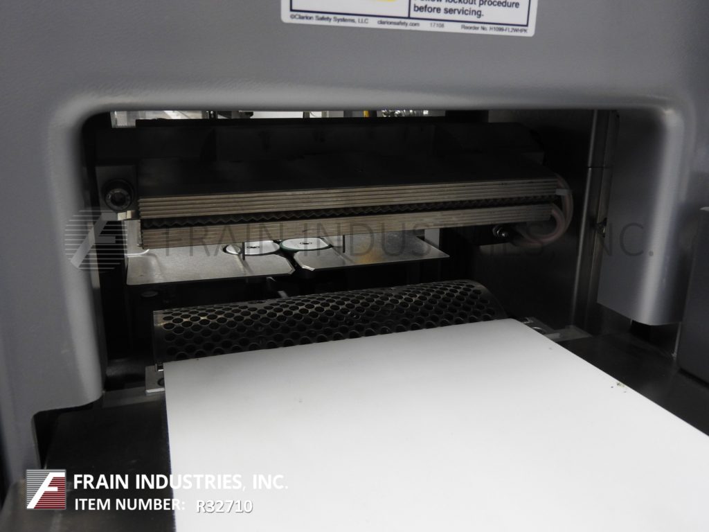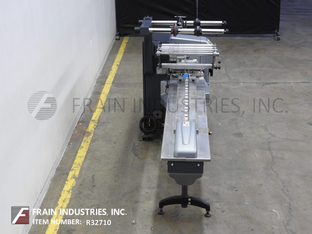 返回所有设备珍珠型,2-up,自动,3轴,伺服驱动,水平包装额定30至150个产品每分钟-取决于材料,应用和机器配置。产品尺寸范围:1.6"至18"长度;3/8"至8.5"宽度;高达3.9英寸的高度。配备60"长操作负载区域,1-1/2"高快速更换塑料耳目前设置在6"中心,可调前,2-up, 8.6"宽x 1"厚锯齿密封钳和鳍状密封组件车轮联锁安全防护和42"长x 8"宽新ophreme产品排放输送机。胶片规格可达24英寸卷轴宽度;14"外径线轴,2"外径线轴。控制面板有PLC控制和触摸板控制器与启动,停止和e-stop按钮。用(6)调平支腿安装在基础框架上。