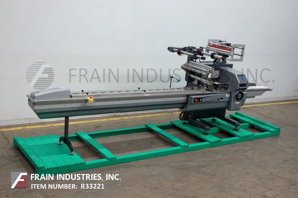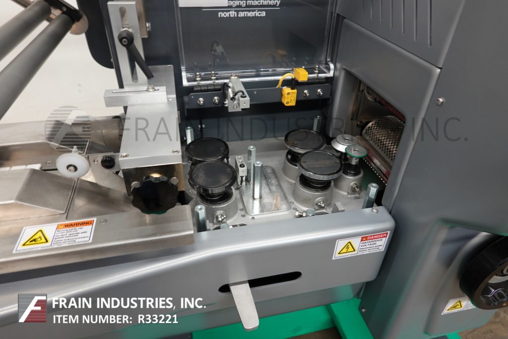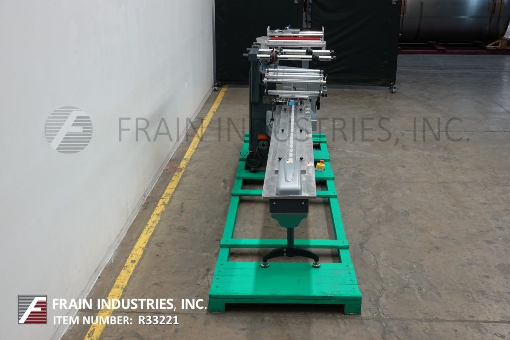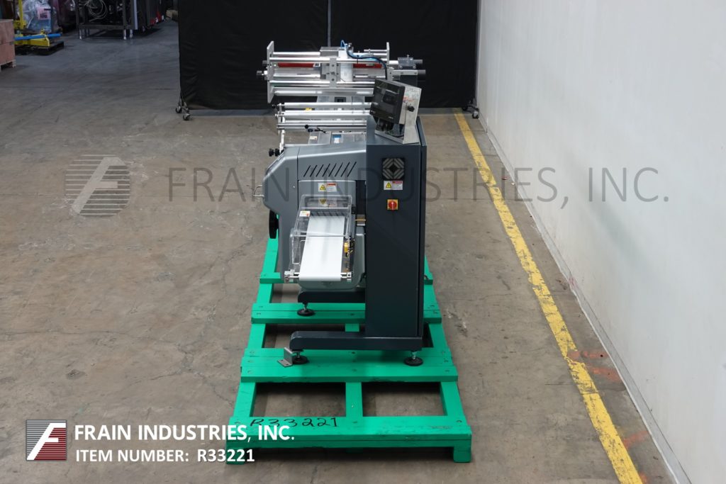 返回所有设备珍珠型,2-up,自动,3轴,伺服驱动,水平包装额定30至150个产品每分钟-取决于材料,应用和机器配置。产品尺寸范围:1.6"至18"长度;3/8"至8.5"宽度;高达3.9英寸的高度。配备60"长操作负载区域,1-1/2"高快速更换塑料耳目前设置在6"中心,可调前,2-up, 8.6"宽x 1"厚锯齿密封钳和鳍状密封组件车轮联锁安全防护和42"长x 8"宽新ophreme产品排放输送机。胶片规格可达24英寸卷轴宽度;14"外径卷轴,3"外径芯。控制面板有PLC控制和触摸板控制器与启动,停止和e-stop按钮。用(6)调平支腿安装在基础框架上。