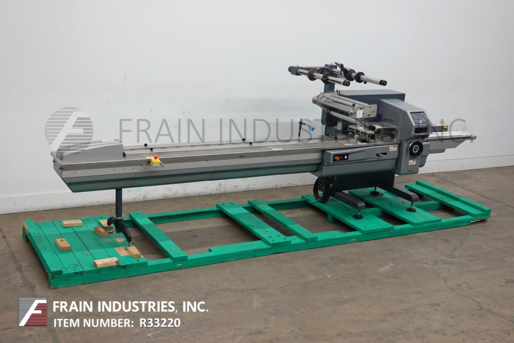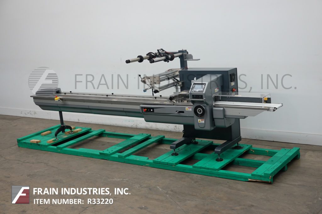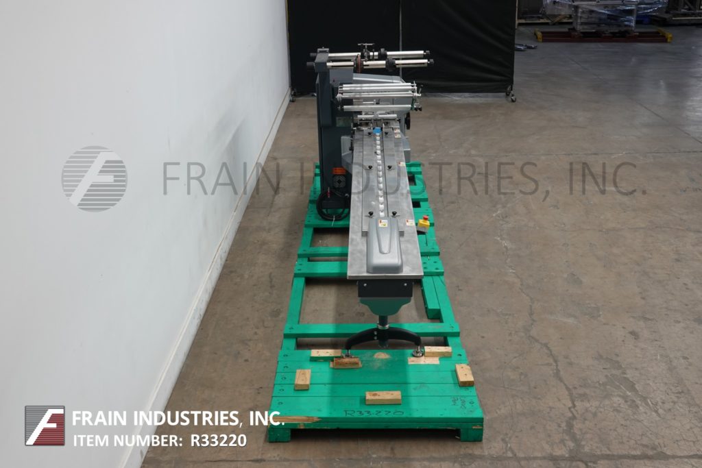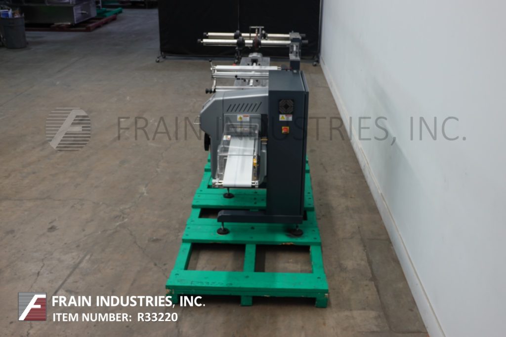 返回所有设备PFM型珍珠,2-UP,自动,3轴,伺服驱动,水平包装,每分钟30至150级产品 - 取决于材料,应用和机器配置。产品尺寸范围:1.6“至18”的长度;3/8“至8.5”宽度;高达3.9英寸的高度。配备60“长操作员装载区域,带1-1 / 2”高速更换塑料凸耳,目前设置在6“中心,可调节前,2.6英寸宽x 1”厚锯齿密封钳口和翅片密封装配轮与互锁安全保护和42“长×8”宽新的新生产品排放输送机。Film spec’s up to 24" reel width; 14" OD reel, on 3" OD core. Control panel has PLC controls and touch pad controller with start, stop and e-stop push buttons. Mounted on base frame with (6) leveling legs.