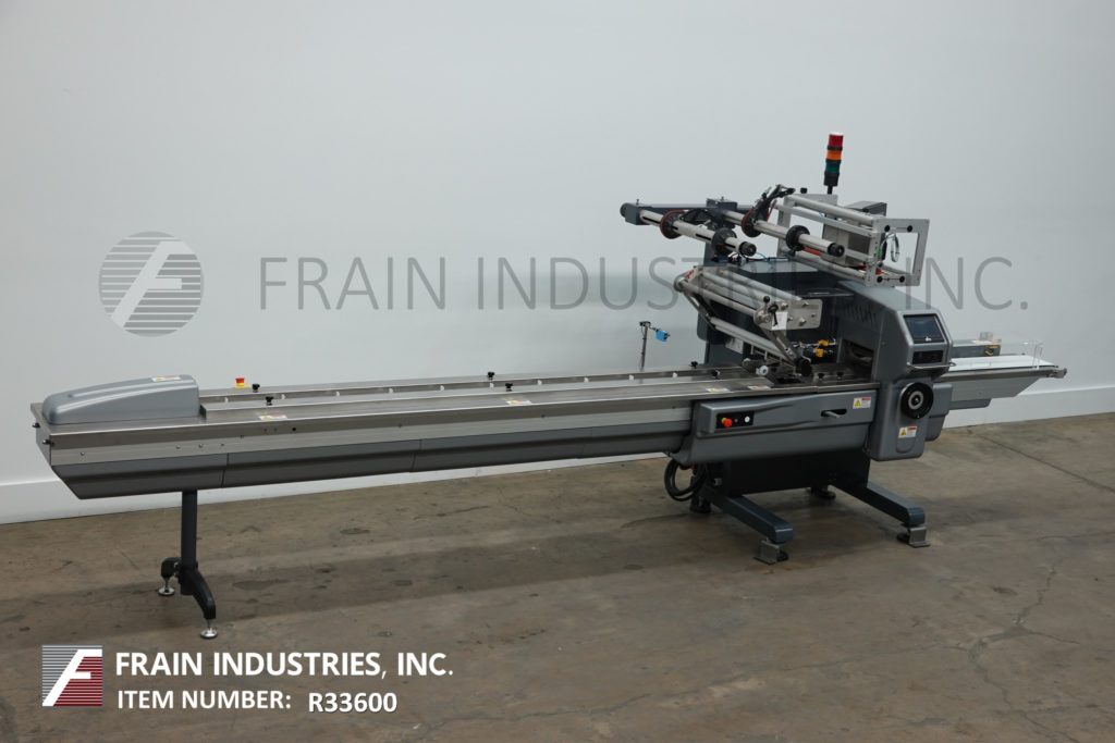 返回所有设备珍珠型,2-up,自动,3轴,伺服驱动,水平包装额定30至150个产品每分钟-取决于材料,应用和机器配置。产品尺寸范围:1.6"至18"长度;3/8"至8.5"宽度;高达3.9英寸的高度。配备60"长操作负载区域,1-1/2"高快速更换塑料耳目前设置在6"中心,可调前,2-up, 8.6"宽x 1"厚锯齿密封钳和鳍状密封组件车轮联锁安全防护和42"长x 8"宽新ophreme产品排放输送机。胶片规格可达24英寸卷轴宽度;14"外径卷轴,3"外径芯。控制面板有PLC控制和触摸板控制器与启动,停止和e-stop按钮。用(6)调平支腿安装在基础框架上。