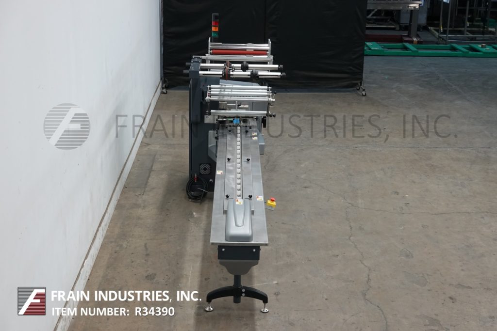 返回所有设备Pfm,珍珠型,2-up,自动,3轴,伺服驱动,卧式包装额定每分钟30 - 150个产品-取决于材料,应用和机器配置。产品尺寸范围:长度1.6“至18”;3/8“至8.5”宽度;身高高达3.9英寸。配备80“长操作负荷区,凸耳链进给,可调前,2-上,8.6“宽x 1”厚锯齿密封钳和带联锁安全防护的鳍密封装配轮和42“长x 8”宽neophreme产品卸货输送机。胶片规格可达24“卷宽;14”外径卷轴,在3”外径核心。控制面板采用PLC控制和触摸屏控制器,具有启动、停止、e-stop按钮。用(6)调平腿安装在底座上。