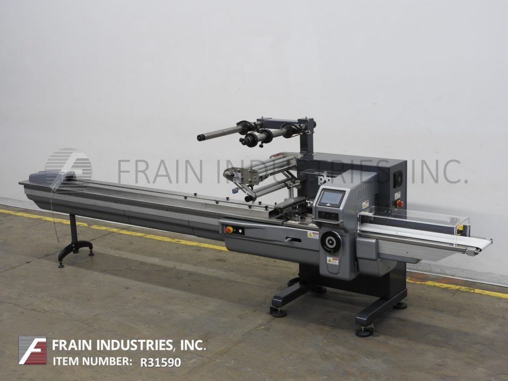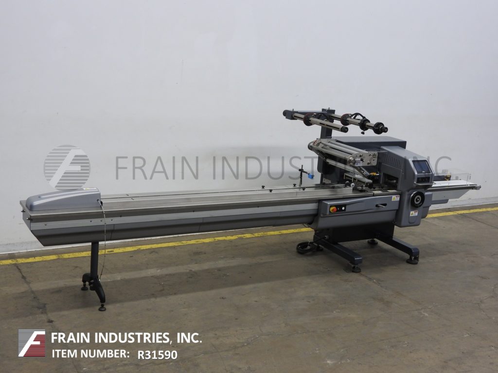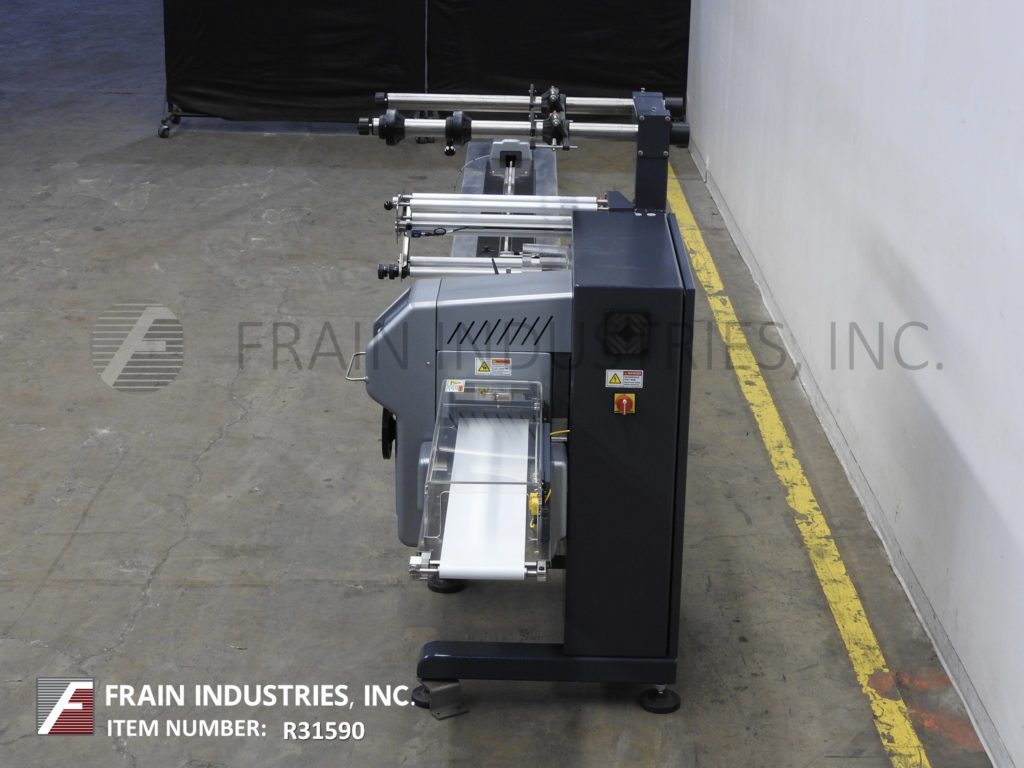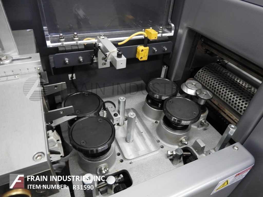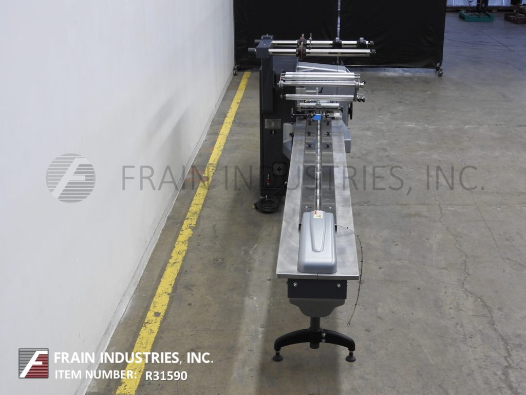 返回所有设备PFM模型珍珠,2-up,自动,3轴,伺服驱动,水平,包装器从30到150级产品每分钟 - 取决于材料,应用,机器配置和操作员灵活性。产品尺寸范围:1.6“至18”的长度;宽度3/8“至8.8”;高达4英寸,具有适当的变化零件。配备60“长操作员装载区域,具有1-1 / 2”高速更换塑料凸耳,目前在6“中心,可调节的前,2英寸,9英寸宽x1“厚锯齿状密封钳和翅片密封装配轮,带有互锁安全保护和42”长×8“宽的新生产品排放输送机。Film spec’s up to 24" reel width; 14" OD reel, on 2" OD core. Control panel has PLC controls and touch pad controller with start, stop and e-stop push buttons. Mounted on base frame with (6) leveling legs.