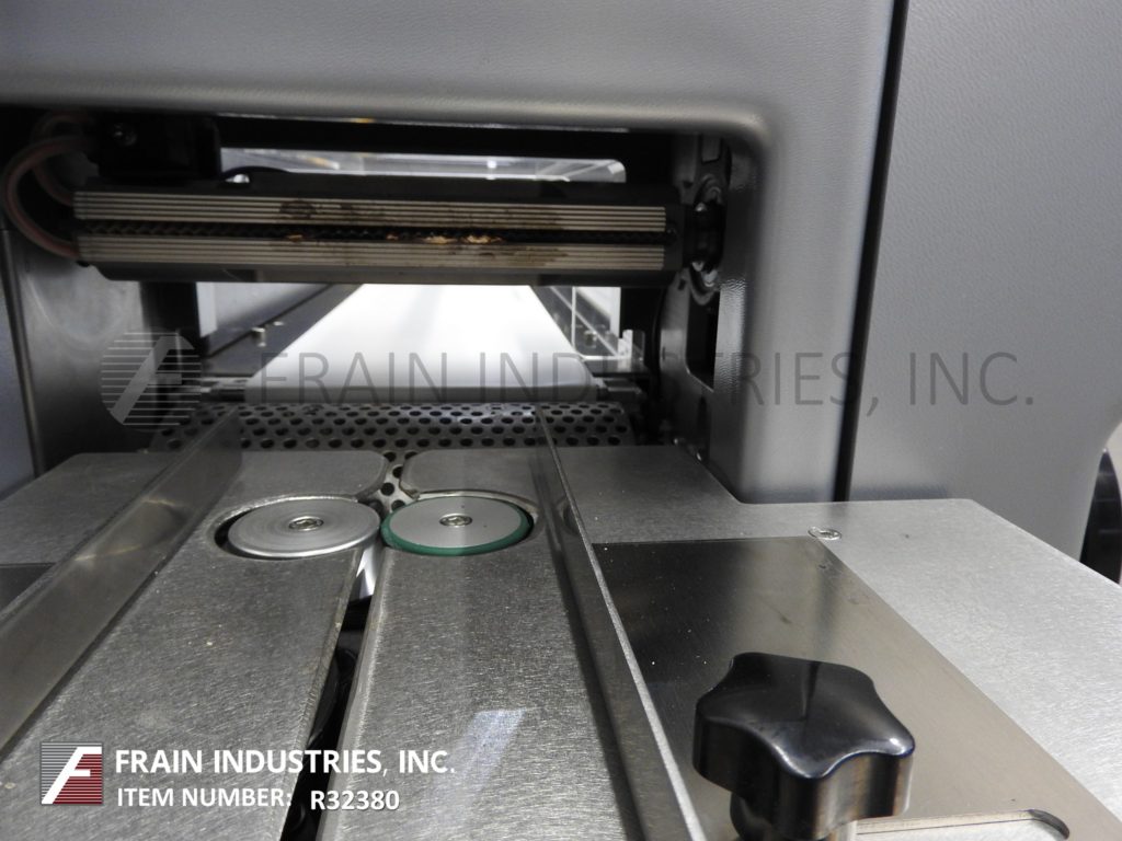 返回所有设备珍珠型,2-up,自动,3轴,伺服驱动,水平包装额定30至150个产品每分钟-取决于材料,应用和机器配置。产品尺寸范围:1.6"至18"长度;宽度3/8"至8.8";高达4英寸的高度与适当的更换部件。配备60"长操作负载区域,1-1/2"高快速更换塑料耳目前设置在6"中心,可调前,2-up, 9"宽x 1"厚锯齿密封钳和鳍状密封组件车轮联锁安全防护和42"长x 8"宽neophreme产品卸料输送机。胶片规格可达24英寸卷轴宽度;14"外径线轴,2"外径线轴。控制面板有PLC控制和触摸板控制器与启动,停止和e-stop按钮。用(6)调平支腿安装在基础框架上。