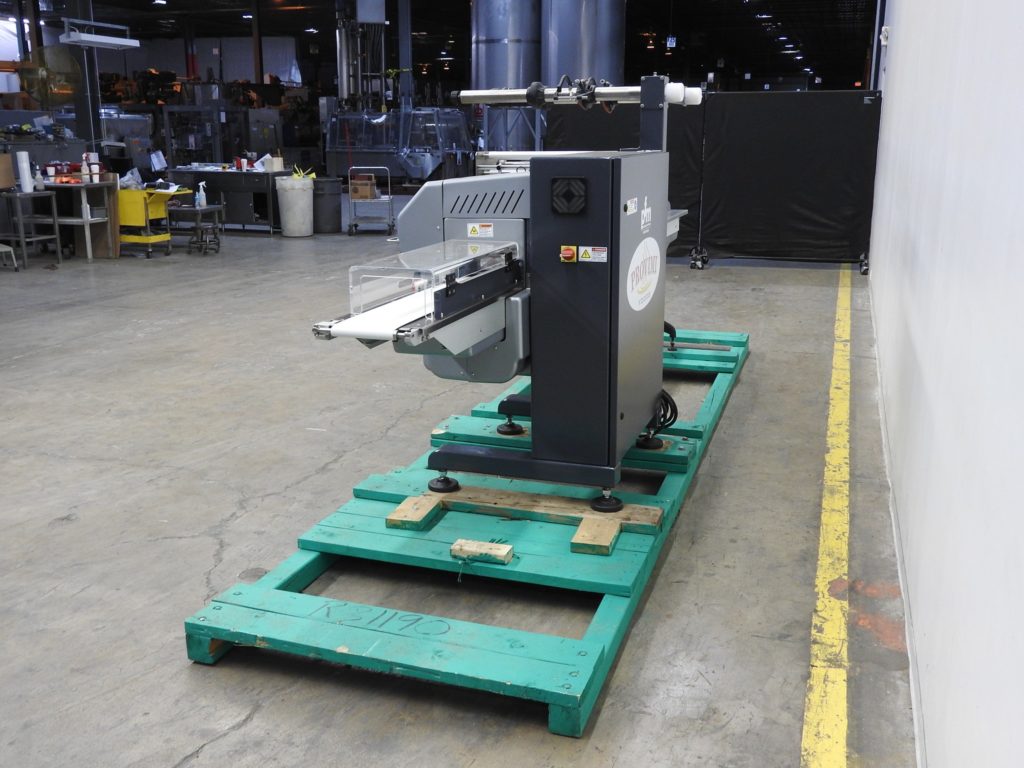 返回所有设备珍珠型,2-up,自动,3轴,伺服驱动,水平包装额定30至150个产品每分钟-取决于材料,应用和机器配置。产品尺寸范围:1.6"至18"长度;宽度3/8"至8.8";高达4英寸的高度与适当的更换部件。配备60"长操作负载区域,1-1/2"高快速更换塑料耳目前设置在6"中心,可调前,2-up, 9"宽x 1"厚锯齿密封钳和鳍状密封组件车轮联锁安全防护和42"长x 8"宽neophreme产品卸料输送机。胶片规格可达24英寸卷轴宽度;14"外径线轴,2"外径线轴。控制面板有PLC控制和触摸板控制器与启动,停止和e-stop按钮。用(6)调平支腿安装在基础框架上。
