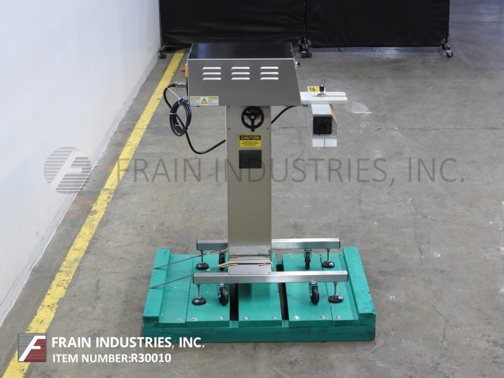 返回所有设备支柱模型unifoiler,紧凑,空气冷却的感应密封系统从0到120英尺/分钟,每分钟产品数量 - 取决于材料和应用。配备2kW空气冷却,不锈钢密封外壳,带26“长x 5”宽平条密封头,配有2½“中心线,能够将15mm〜120mm的盖子密封。微处理器控制,带触摸板控制器和e-stop。安装在手柄上可调节,便携式支架,带脚轮和平整腿。