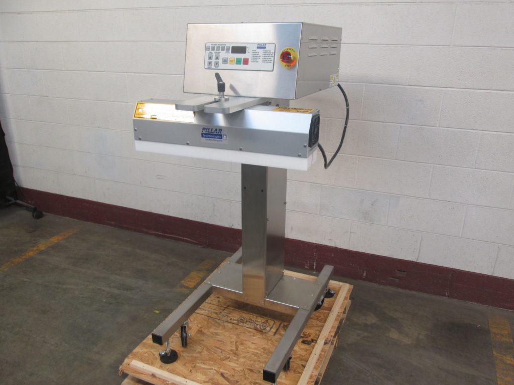 返回所有设备支柱模型unifoiler,紧凑,空气冷却的感应密封系统从0到120英尺/分钟,每分钟产品数量 - 取决于材料和应用。Equipped with 10’L x 4.5"W S/S conveyor, 2kw air cooled, stainless steel sealed enclosure with, 26" long x 5" wide flat bar sealing head with 2-1/2" center line and is capable of sealing from 15mm to 120mm caps.
