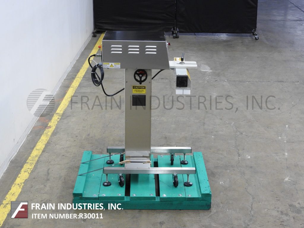返回所有设备支柱模型unifoiler,紧凑,空气冷却的感应密封系统从0到120英尺/分钟,每分钟产品数量 - 取决于材料和应用。配备2kW空气冷却,不锈钢密封外壳,带26“长x 5”宽平条密封头,配有2½“中心线,能够将15mm〜120mm的盖子密封。微处理器控制,带触摸板控制器和e-stop。安装在手柄上可调节,便携式支架,带脚轮和平整腿。