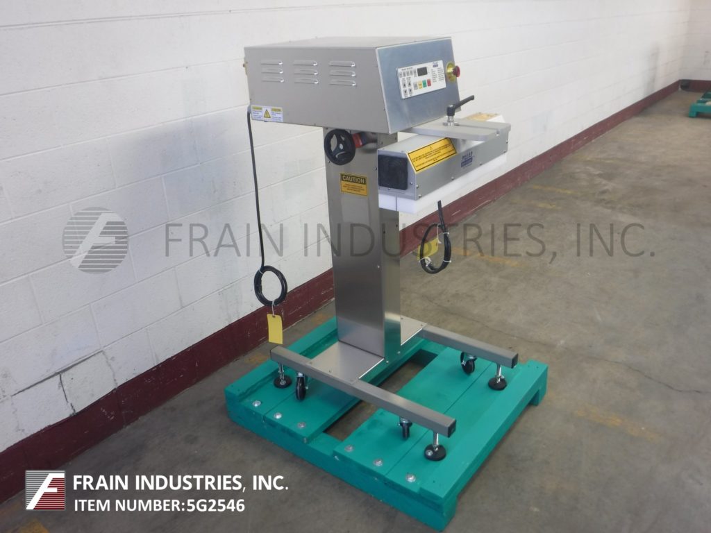 返回所有设备柱型统一注油器,紧凑型,风冷感应密封系统,每分钟0至120英尺,每分钟产品数量-取决于材料和应用。配备2kw风冷不锈钢密封外壳,26“长x 5”宽扁钢密封头,中心线为2-1/2”,能够密封15mm至120mm的盖子。微处理器控制,带触摸板控制器和急停。安装在手摇可调便携式支架上,带有脚轮和水平腿。