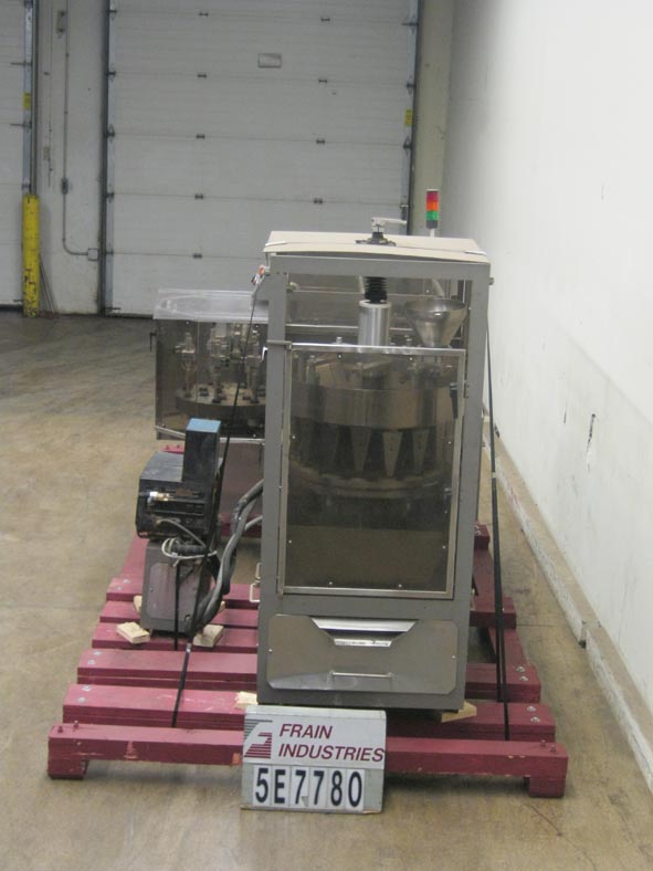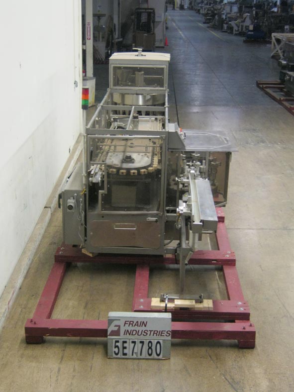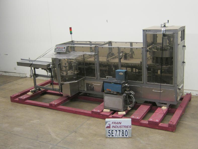 返回所有设备PMI 18B型,自动,连续运动,垂直,热熔胶纸箱每分钟的数量取决于材料和应用。纸箱尺寸范围:1至2- 3/4"在长度x 1/4"到1-1/2"在宽度x 3"到8"在深度与适当的变化部件。配备固定桶系统设置在4"中心,54"长动力空白纸箱杂志,8头旋转pic n位置,纸箱成型机,(16)头旋转容积填料3"长× 2"宽× 7"深的产品漏斗,诺德森(2)枪热熔胶系统。控制面板采用A/B CPU和电凸轮PLS系列5000,e-stop和联锁安全保护。安装在重型框架上。