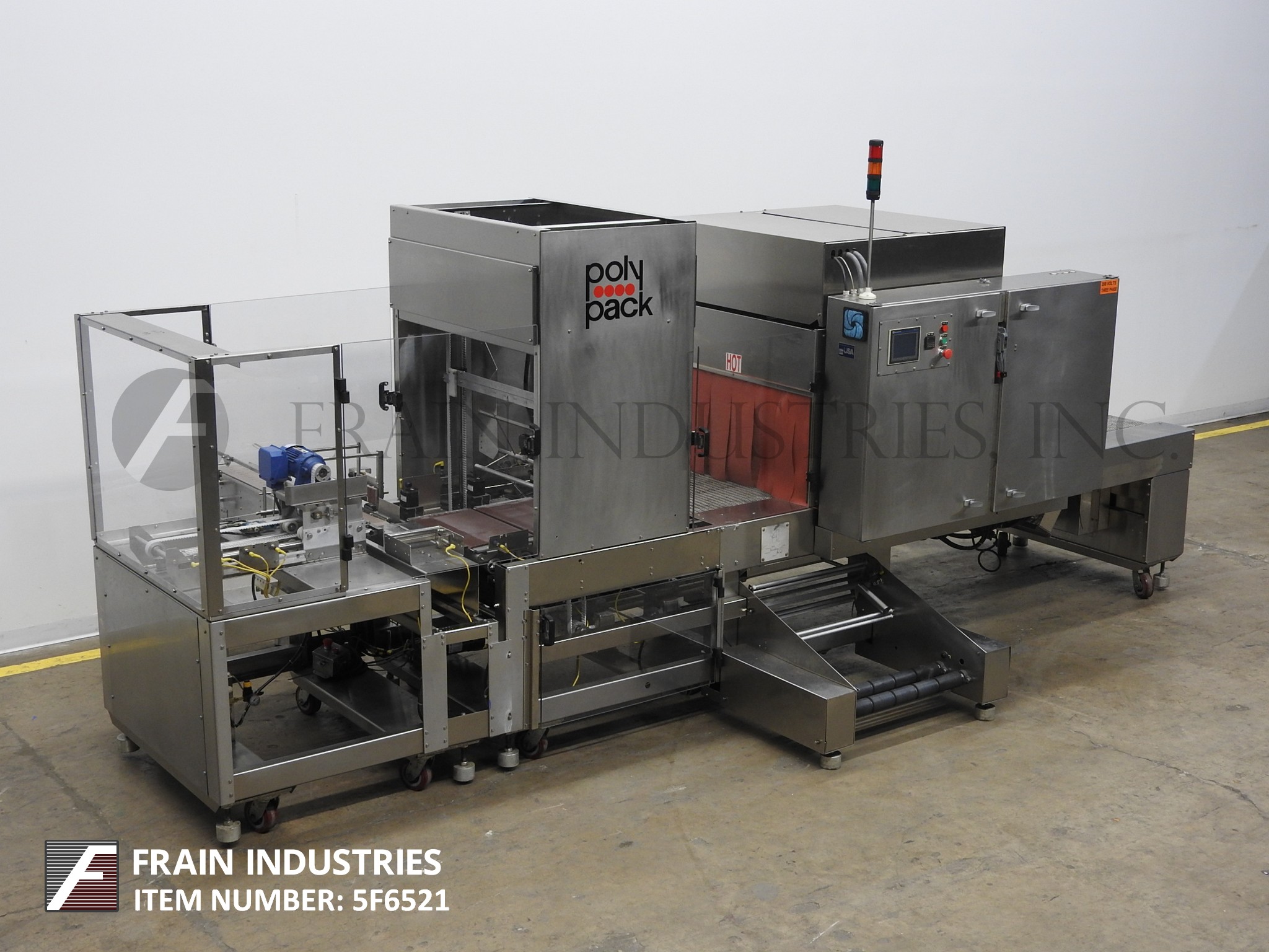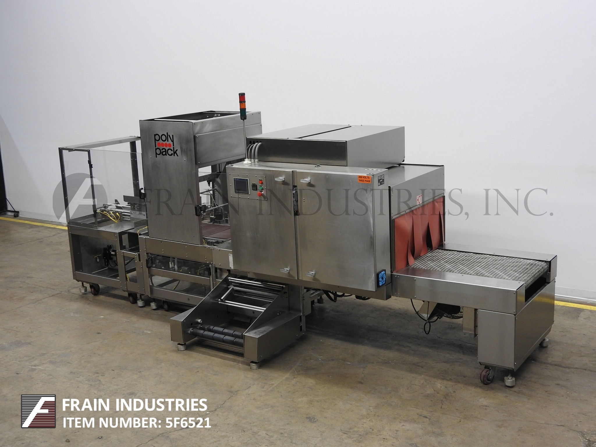 返回所有设备Poly Pak型号CHA24DHL,间歇运动,饲料中的直角,注册薄膜收缩捆绑额定值从5到20个套管/分钟 - 取决于材料,应用和机器配置。配备43“长x 8”宽进料输送机,单头产品推动器,三个12“长x 19”宽产品运输带系统,双底薄膜车辆,配对系统,胶片配准和热线膜切断。隧道总孔径:28“宽度; 18-1 / 2”高度;60“长室。配备118”长x 21“宽钢网输送机,温度和空气流量控制。A / B PLC具有读数,互锁安全保护和状态灯棒。安装在脚轮上。薄膜规格:最长24英寸宽度;直径高达20英寸;在3“直径芯上。