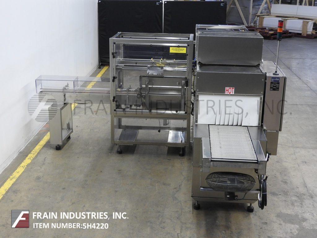 隧道规格:14”高× 20”宽口径单区热收缩隧道;40英寸长腔,76英寸长x 18英寸宽不锈钢滚筒输送机和鼓风机包装。两者都安装在不锈钢底座框架上