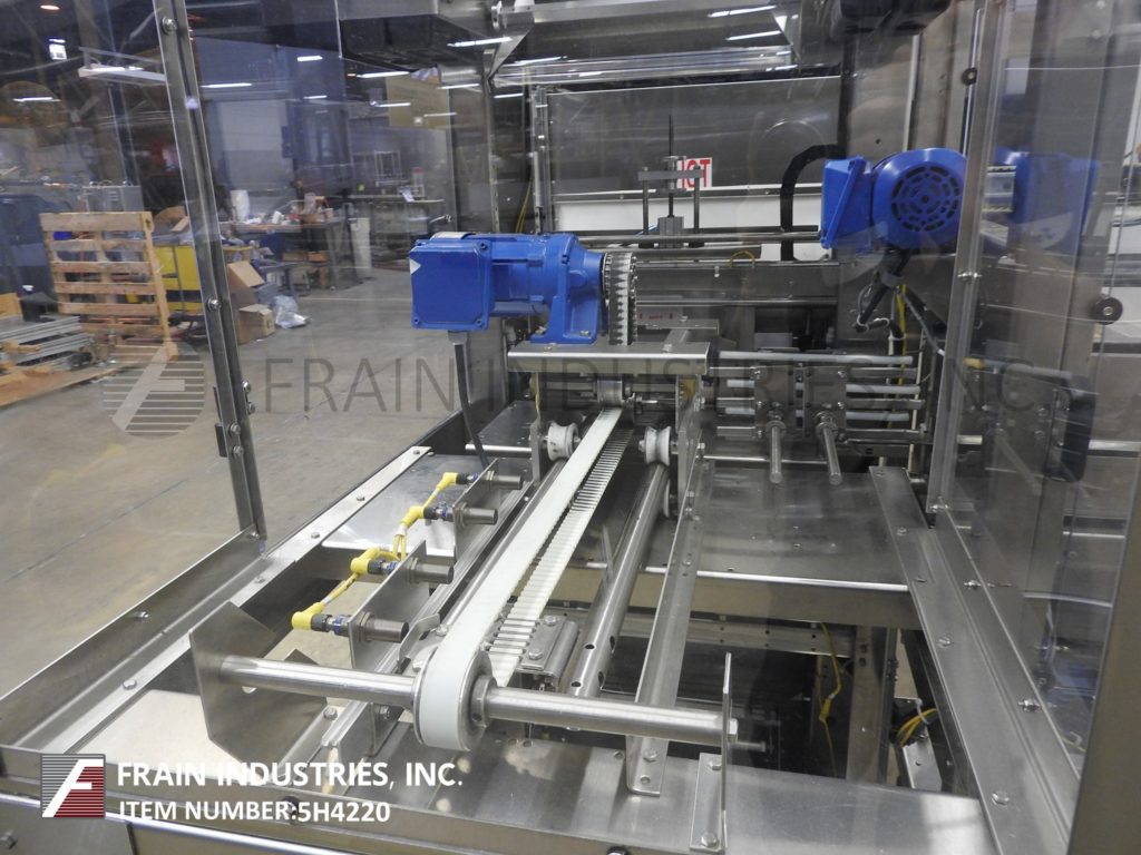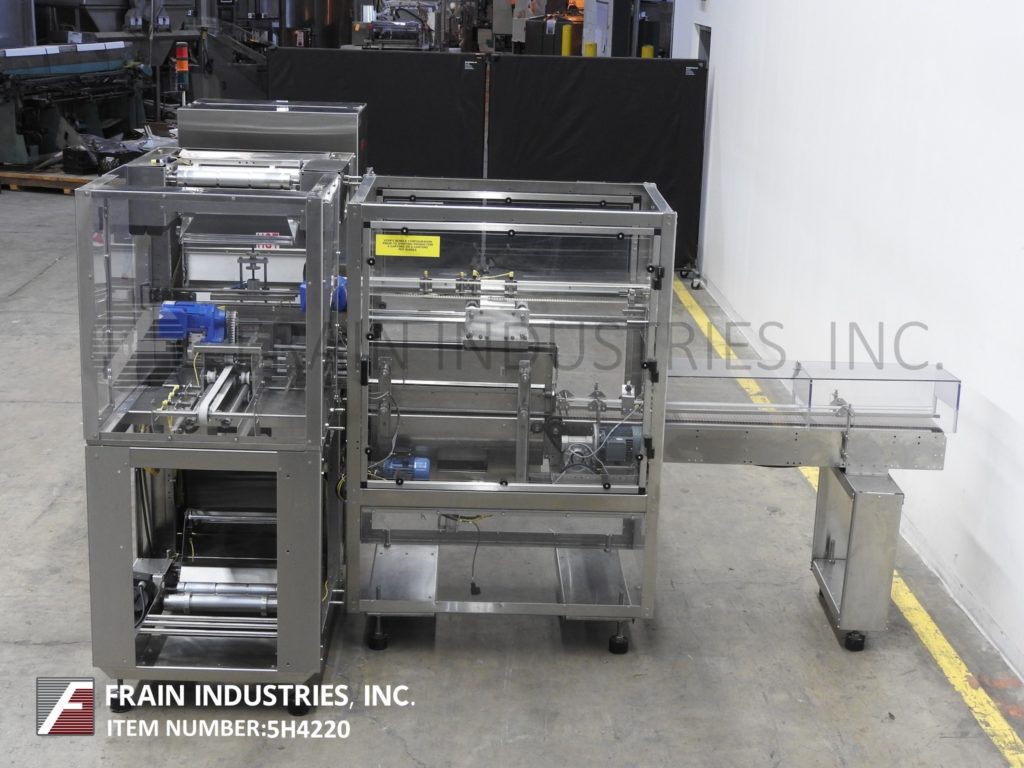 返回所有设备保利Pak模型;PH16,自动不锈钢收缩捆扎机和隧道额定为每分钟1至30束,每束产品的数量取决于材料和应用。配备6"宽x 108"长的直角产品在饲料输送机和单头产品装载推臂上的上料机,16"宽的密封杆与14"垂直旅行和上和下16"长的薄膜芯轴,最大外径12";在3“OD芯和低膜检测。控制面板有PLC控制器和LED显示,具有隧道和密封条温度控制,电源,总启动,停止和统计灯条。