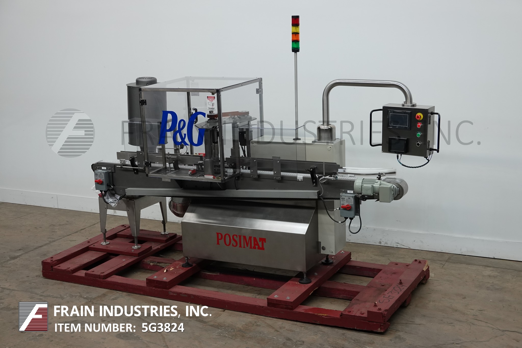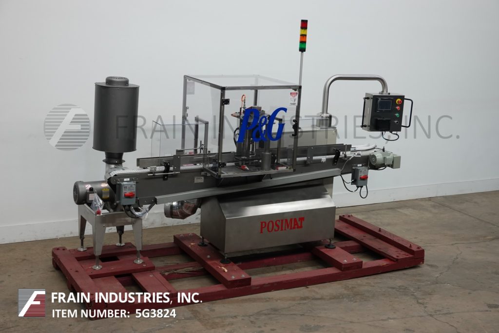 返回所有设备Posimat模型Giramat-D,伺服伺服,瓶取向器从40〜200瓶/分钟额定 - 取决于材料和应用。配备130“长X 3-1 / 2”宽产品真空输送机,可调节导轨,带定向器和鼓风机包装的瓶盖器。Swing Arm控制面板具有启动,停止和e-STOP按钮控制与联锁lexan安全守护和Statis灯棒。安装在基架上。