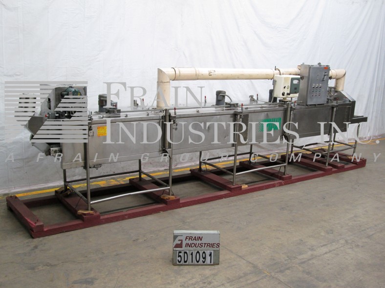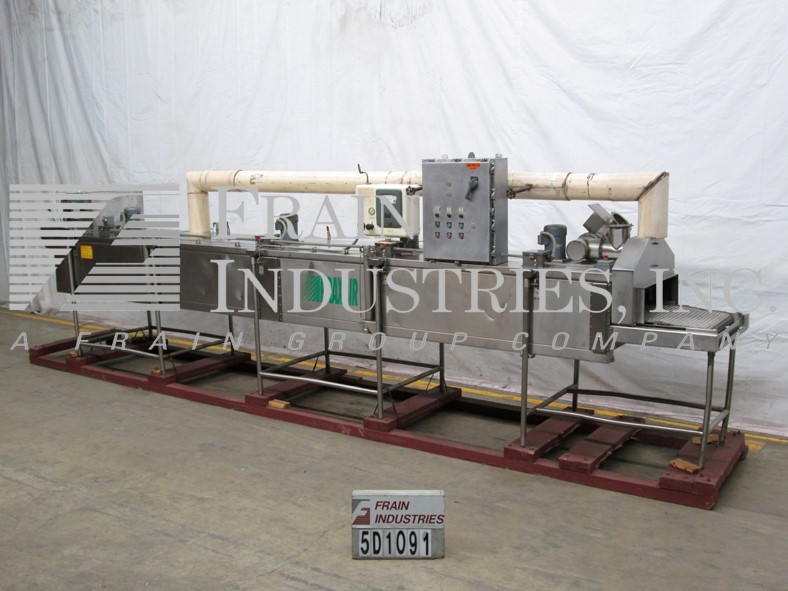 返回所有设备不锈钢,氮气冷冻隧道。配备24英寸宽× 22英寸长网带,6英寸高容量。(3) 1/2马力顶部安装电机驱动风扇,11个放电喷嘴,Foxboro温度控制器,单门,弹跳盘。包括一扇横跨象限的门。(2)门共(1)两侧及控制面板。会接受液氮或二氧化碳。安装在(12)腿基础框架上。每小时的产量取决于材料,应用和机器配置。