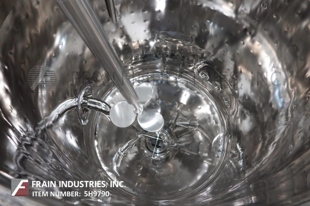 Back to All EquipmentPrecision Stainless, 75 gallon capacity, 316 stainless steel jacketed processing tank. Vessel dimensions: 26" diameter x 30" straight wall. Equipped with bolt down dome cover, CIP spray balls supplied by 2"OD / 1½"ID Tri-Clamp fittings, ½ HP top mounted prop agitation and thermowell. Dish bottom has 3½" OD / 3" ID bottom discharge with valve and 22" ground clearance.
