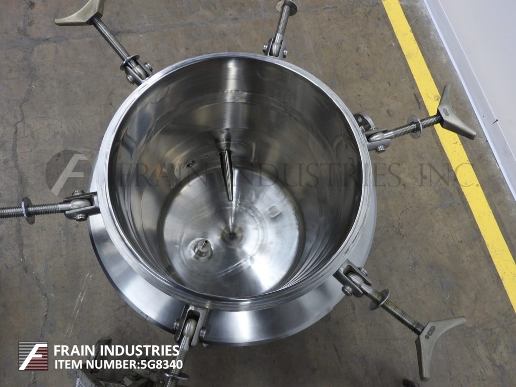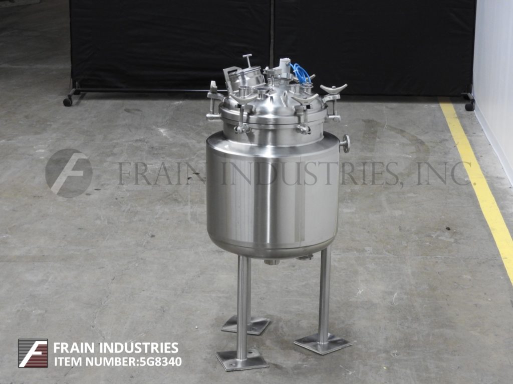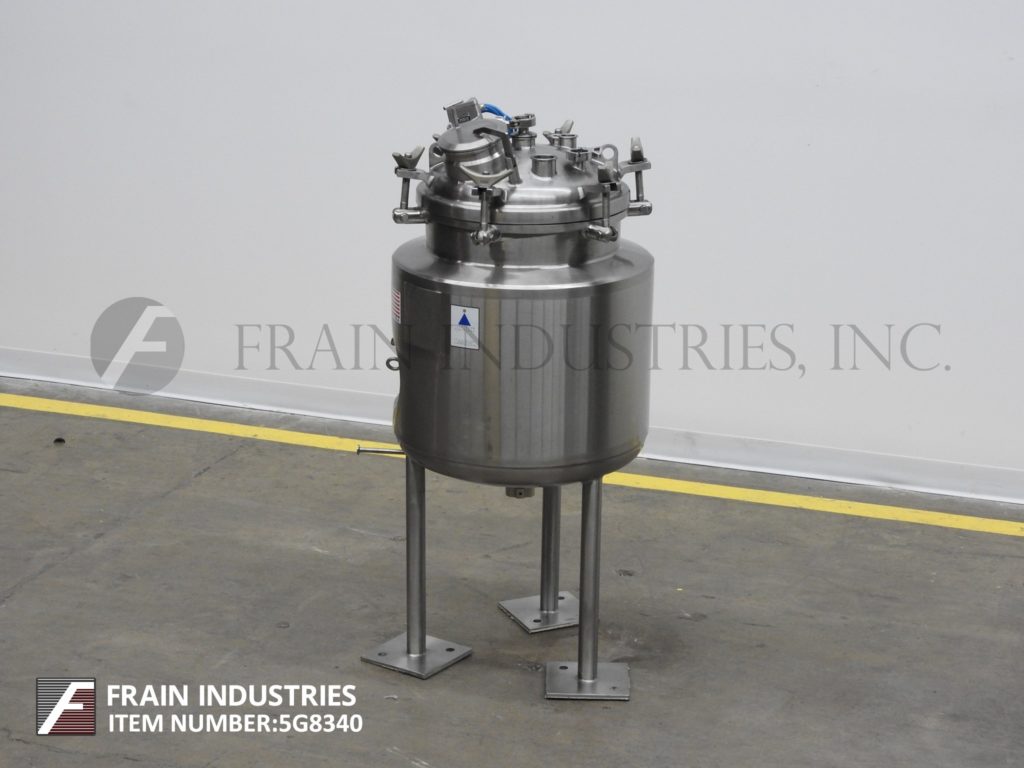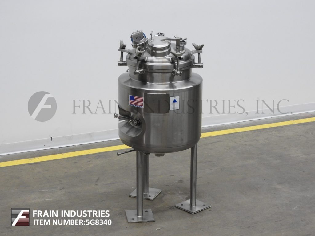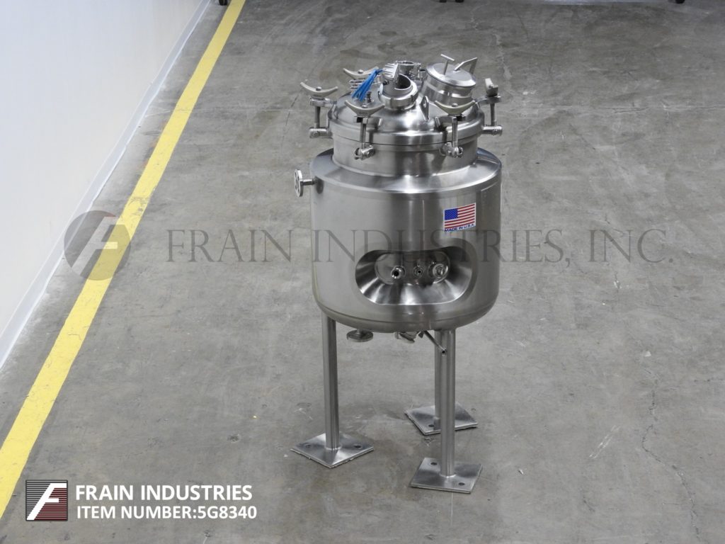 返回所有设备精密不锈钢,80升容量,316L不锈钢夹套和绝缘真空工艺罐。容器尺寸:18"直径x 21"直壁。配备狼吞虎咽圆顶顶部,顶部安装光和窥镜,6”直径人行巷道抬起盖子,(1)热好了,(1)CIP喷淋球2“OD /¾”ID Tri-clamp连接,盘子底,底磁驱动支撑风潮和底部中心2”OD /¾“ID Tri-clamp风格放电18”地面间隙。安装在(3)管状腿上。