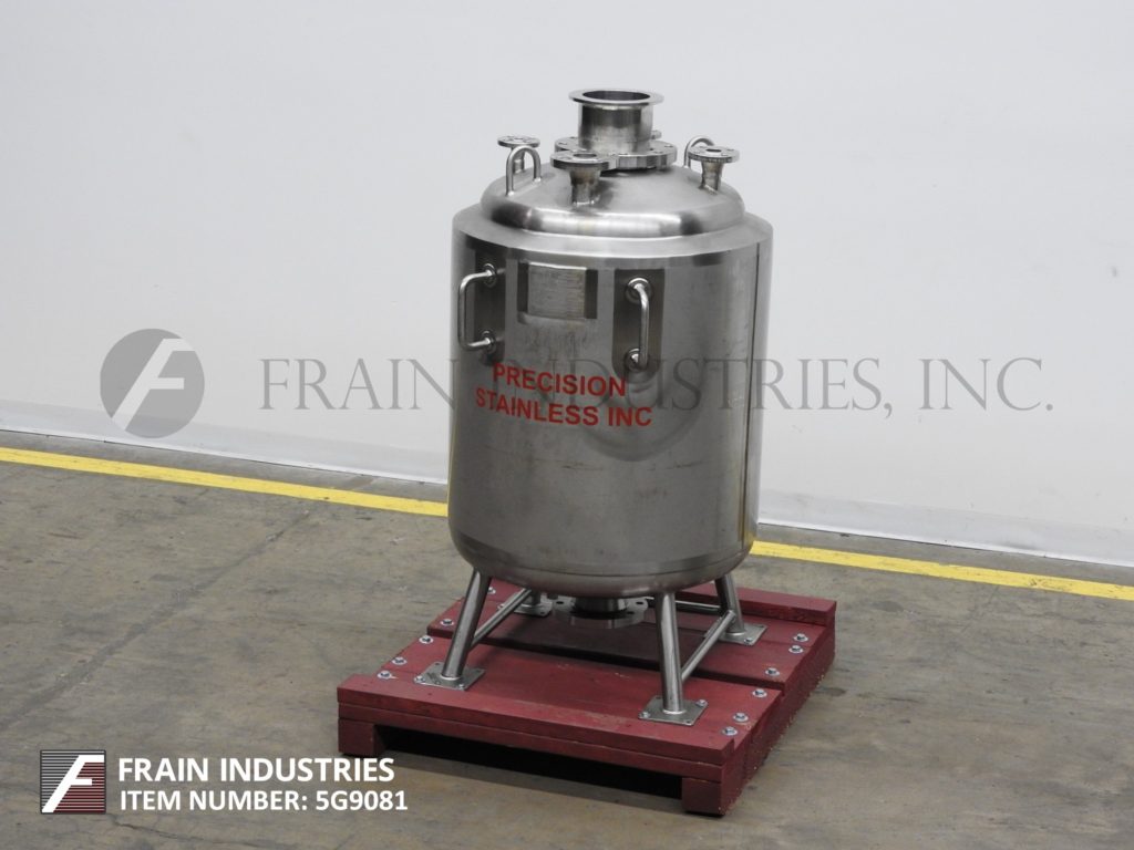 返回所有设备精密不锈钢,53加仑容量,316L不锈钢,夹套,内部真空罐。容器尺寸:24"直径x 37"深,圆顶顶部和碟形底部。配备一个11"OD / 6"ID法兰充电端口和(1)温度计套管。单元安装在(4)管腿上,具有9”外径/ 4”ID法兰式底部排泄,地面间隙为4¼”。