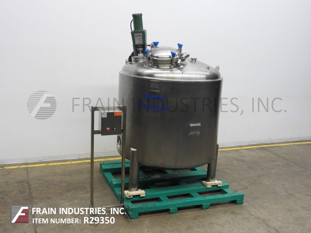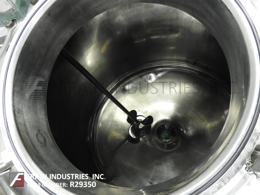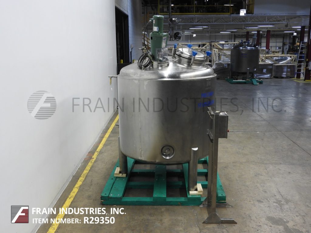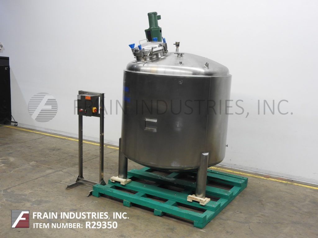 返回所有设备精密不锈钢,1050加仑容量,316L不锈钢夹套罐。血管尺寸:72“直径,直墙为57英寸。配有一个带有20“直径顶部铰链的人的圆顶顶部,(2)Thermowell,1.17 HP顶部安装的支柱搅拌器,带有3½”OD / 3“ID Tri-Clamp风格的中间放电,具有30”地间隙。