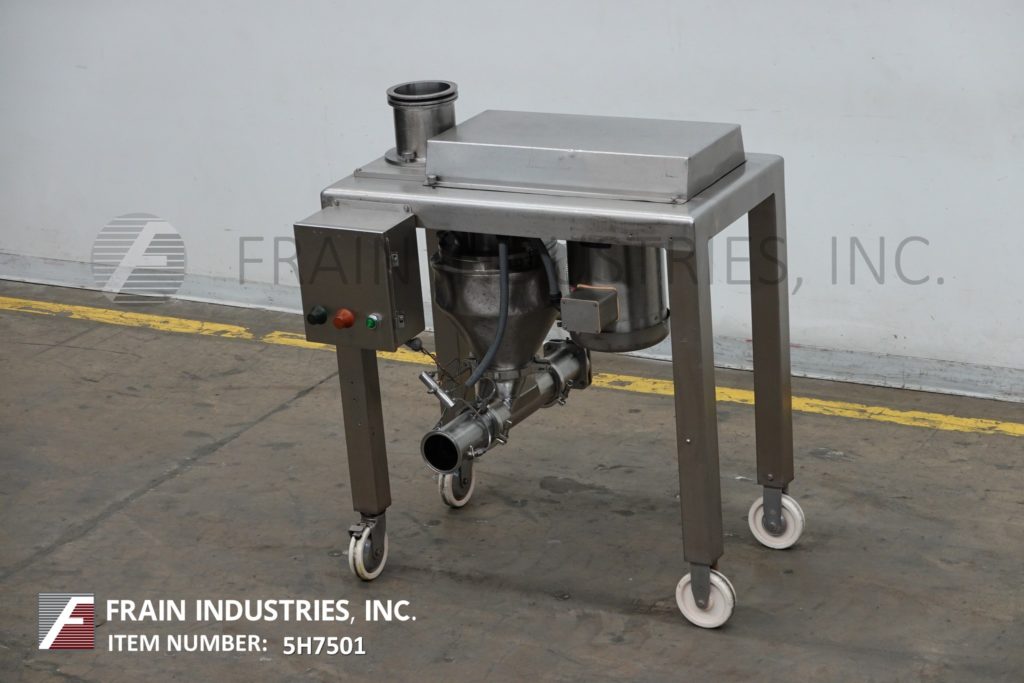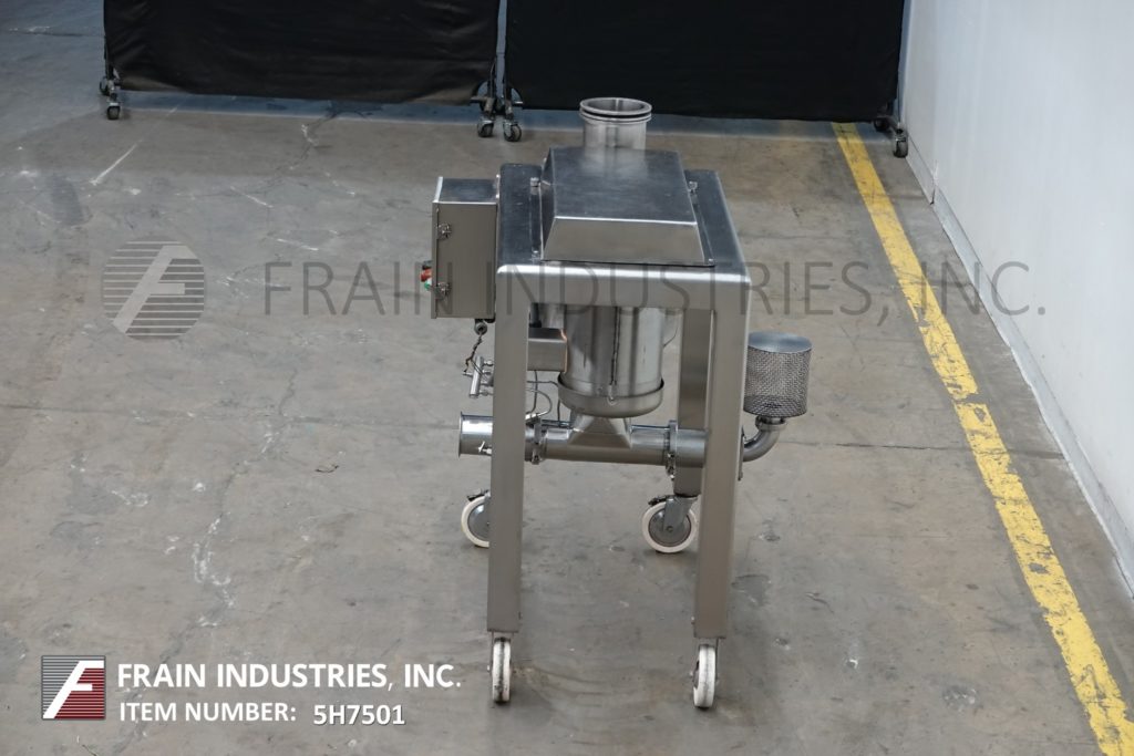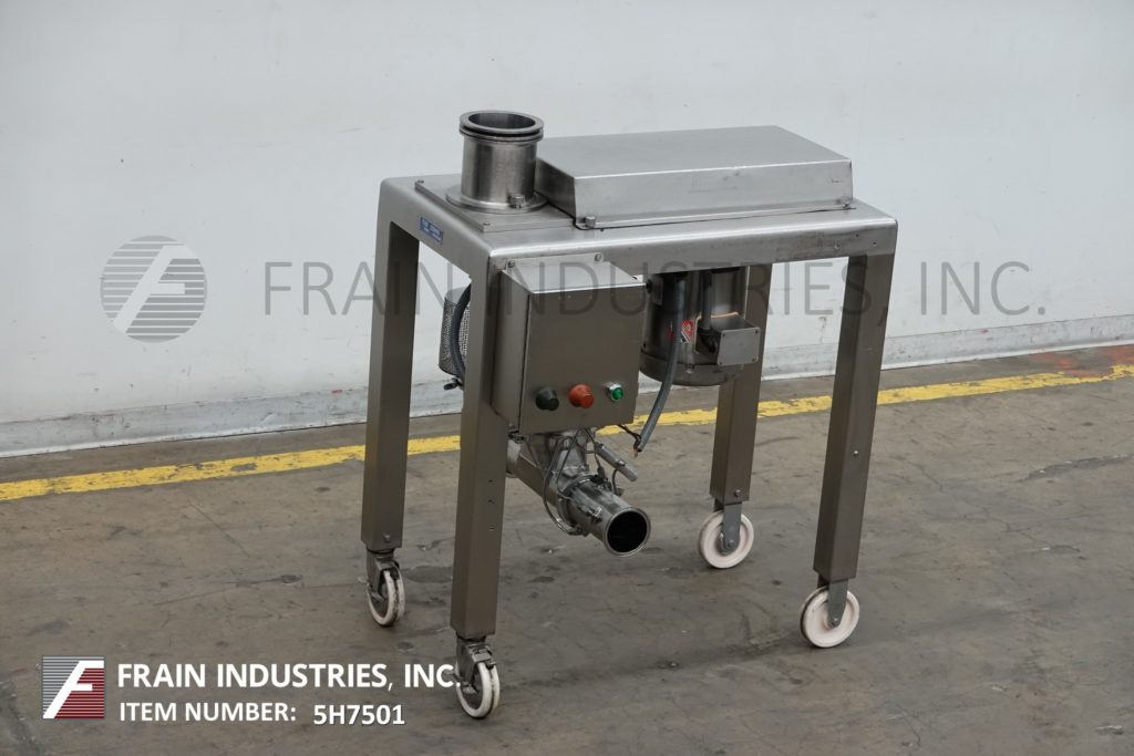 返回所有设备Quadro型号194S, 316不锈钢颗粒尺寸缩小委员会。额定产品每小时1800至4000磅-取决于材料和应用。配备5 - 3 / 4 "直径进料口,8"直径筛和6"直径排出口,21"离地间隙。带有按钮启动/停止的控制面板。安装在带脚轮的不锈钢(4)腿架上。