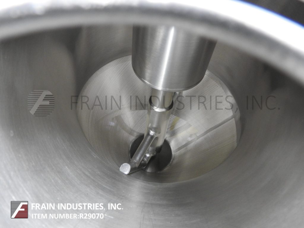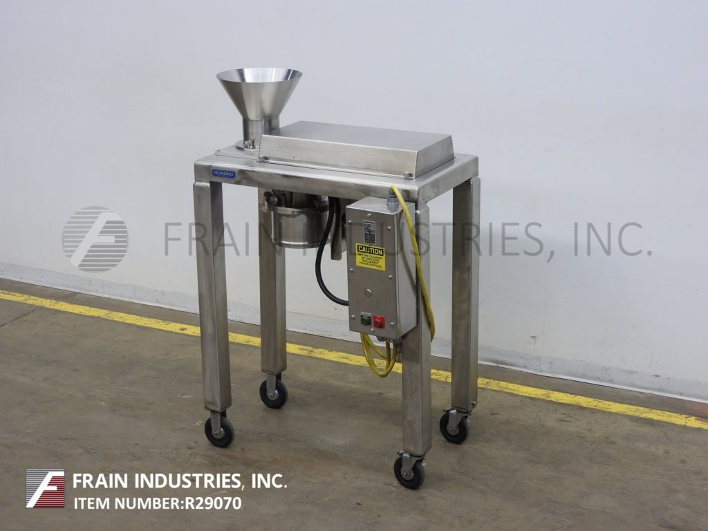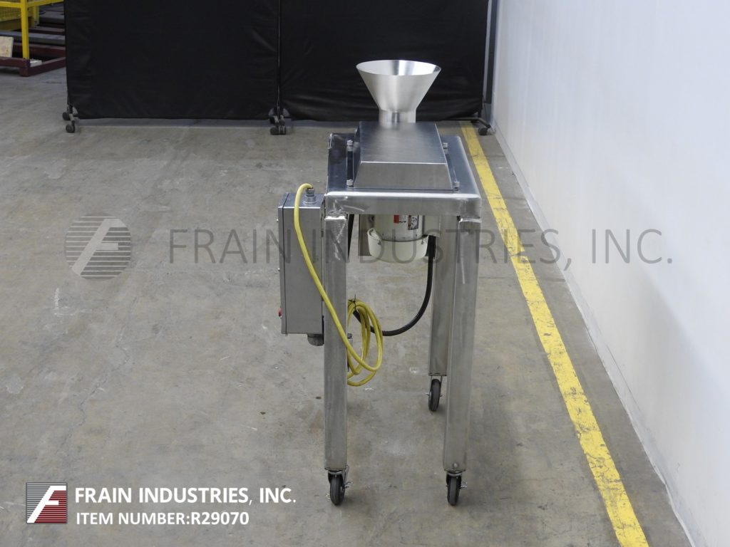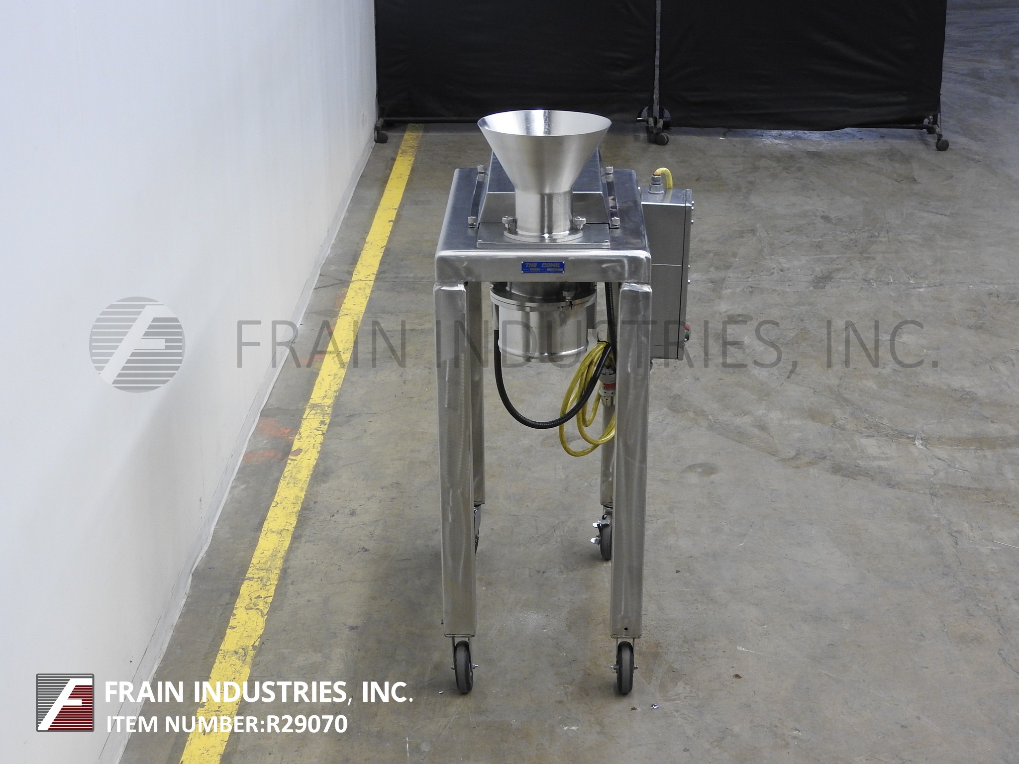返回所有设备Quadro型号194S, 316不锈钢颗粒尺寸缩小委员会。额定产品每小时1800至4000磅-取决于材料和应用。配备14"直径× 12"不锈钢产品料斗,6"直径饲料喉部,8"直径筛和10"直径卸料口与36"地间隙。带有按钮启动/停止的控制面板。安装在不锈钢(4)腿基础框架。