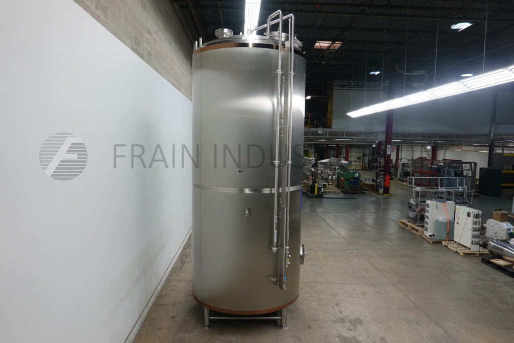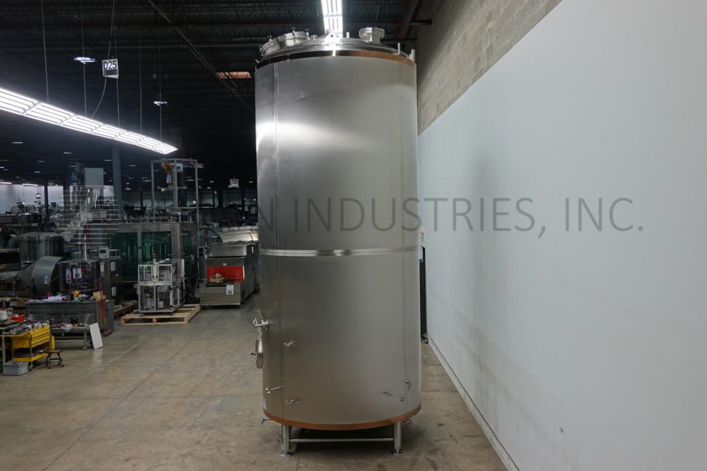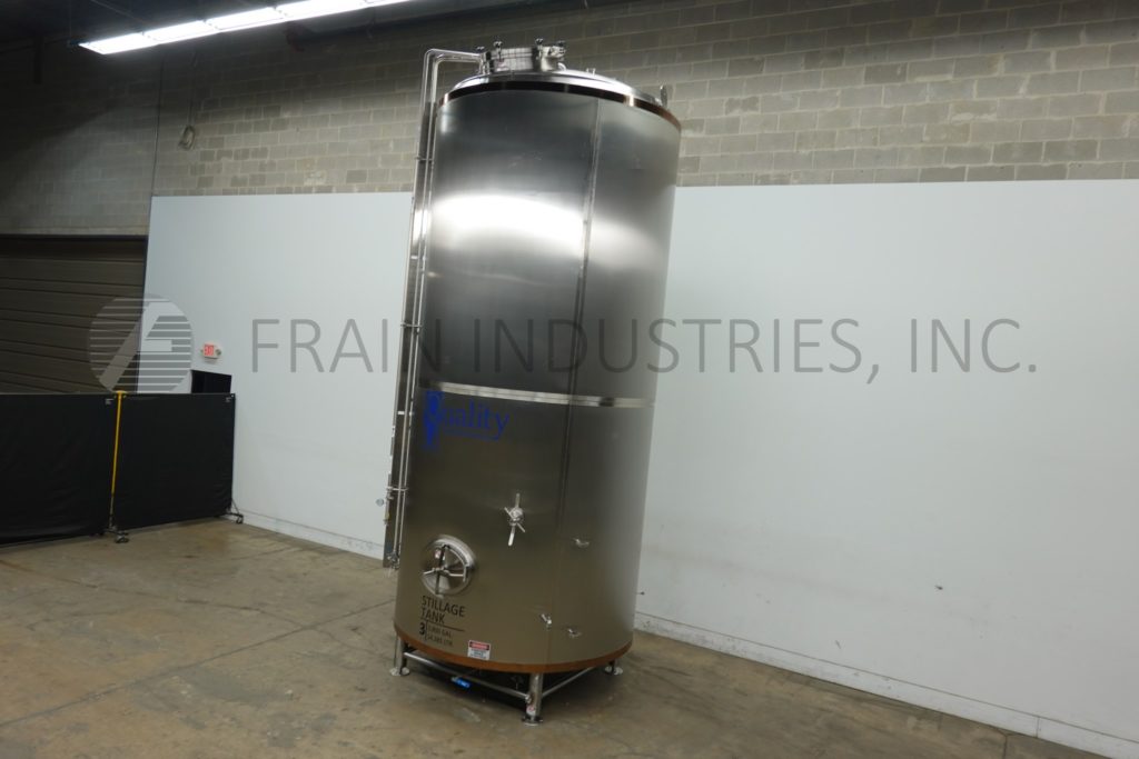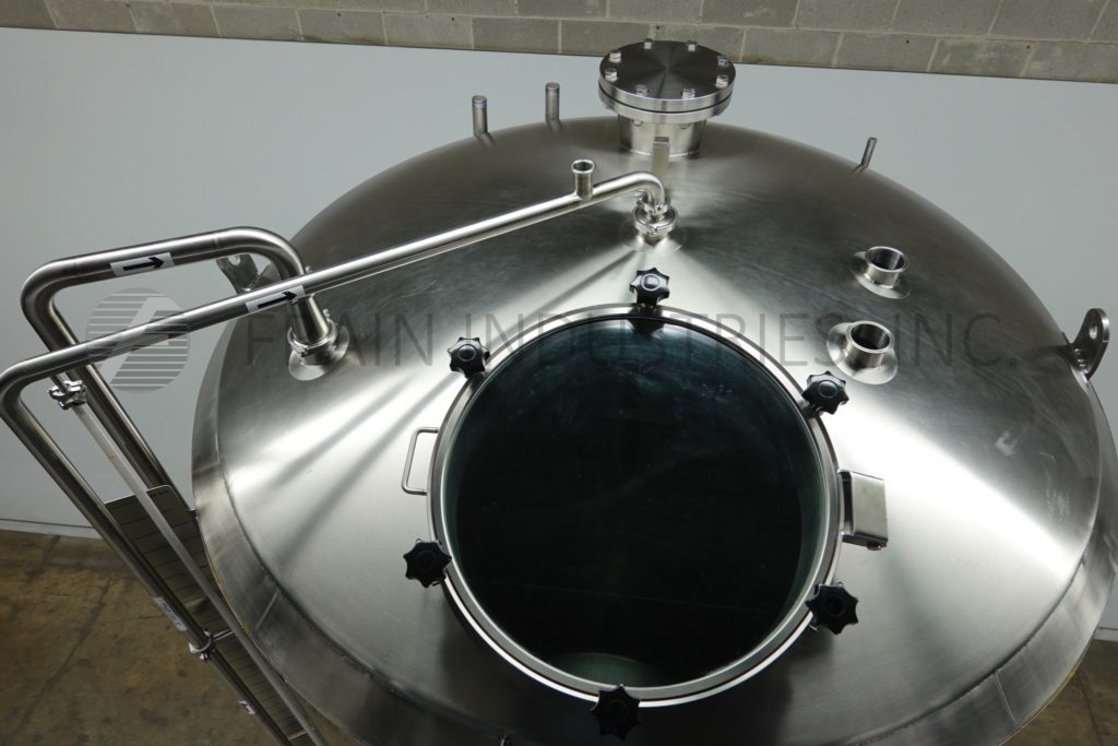 Back to All EquipmentQuality Tank Solutions, 3,775 Gallon, 304 stainless steel, jacketed and insulated tank. Vessel Dimensions: 80" diameter x 168" straight wall. Equipped with a dome top, dish bottom, 18" x 22" side manway with bolt down cover, top 24" diameter manway with bolt down cover with full face sight glass, (1) thermowell, CIP spray ball supplied by a 3"OD / 2½"ID Tri-Clamp fitting and 3"OD / 2½"ID Tri-clamp style bottom discharge with 12" ground clearance.