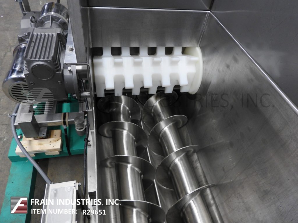 返回所有设备冲压工业,8立方英尺不锈钢,螺旋钻和泵喂料系统。料斗尺寸:36英寸长度;20“宽;在深度20”。配备不锈钢产品料斗,(2)10"直径x 54"长不锈钢送料螺丝动力由1 / 2马力驱动器与605:1变速箱为2.8转每分钟。Waukesha 134型容积泵具有3½”外径/ 3”ID三钳式排放,齿轮比为7.25加仑/分钟。