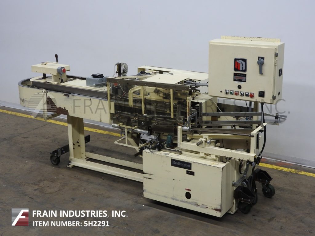 返回所有设备雷丁顿,型号9V,半自动连续运动垂直手载,塞克箱。每分钟25到120纸盒 - 取决于材料,应用和操作员灵活性。纸箱尺寸范围:3/4“至5”的长度;3/4“至4”的宽度;深度为2½“至9”。配有3个链条可调整的6“中心,24英寸长的空白纸箱杂志,纸箱拾取器,(2)48”长手装载区域(每侧一体),顶部和底部纸箱夹紧机构。控制面板开始,停止和e-stop控件。用脚轮和平整腿安装在重型基础框架上。