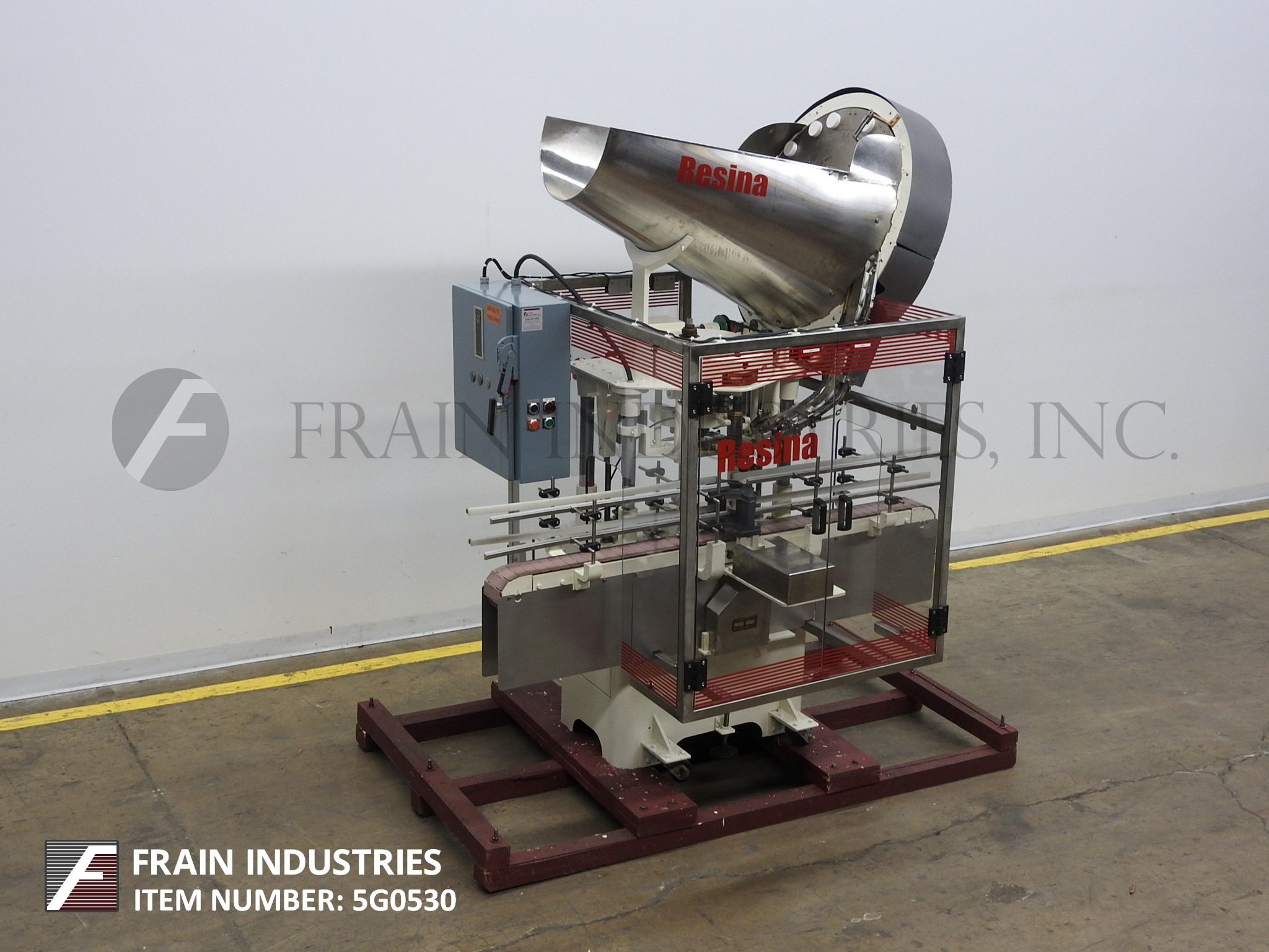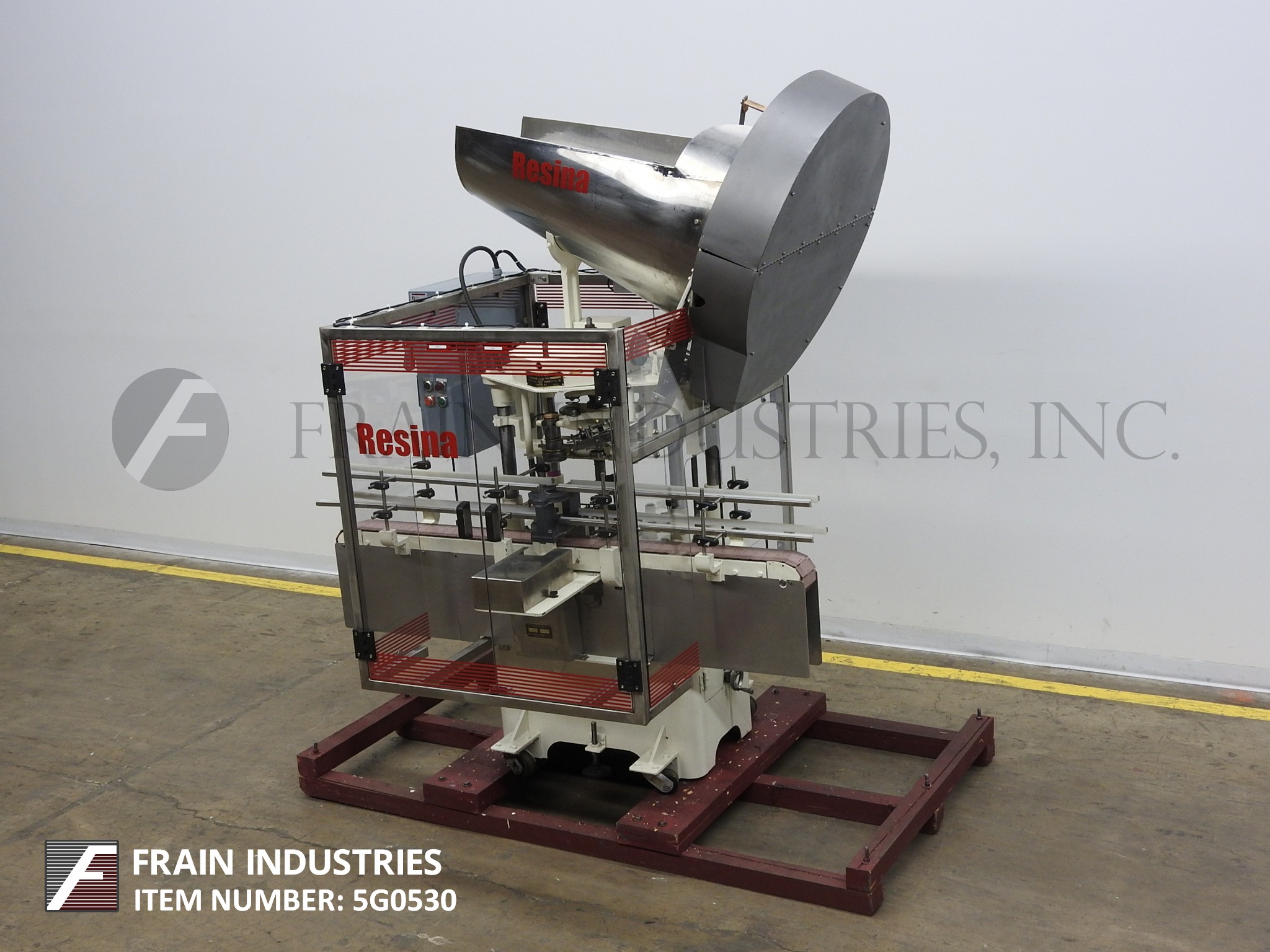 返回所有设备Resina型号LC89,自动,单头,大帽卡盘式压盖机额定从10至45个集装箱每分钟-取决于材料,应用和机器配置。瓶盖尺寸范围:高达89mm。配有80"长4-1/2"宽,不锈钢输送机,帽斗,销轮分选机,帽槽,帽扣,转移鞋和单容器夹持系统。带有启动/停止按钮的控制面板,jog,运行开关,e-stop。安装在施法者。更换所需零件以适应尺寸范围。
