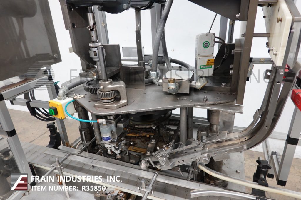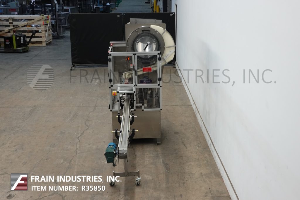 返回所有设备Resina Model S30,自动,间歇性,直列,单头Chuck Capper,每分钟10到40个容器,具体取决于材料,应用和机器配置。盖尺寸范围:13mm至70mm。容器尺寸范围:直径高达4-1/2英寸,高达16英寸。配备125英寸长X4½英寸宽的不锈钢Delron输送机,可调节导轨,帽料斗碟片分隔器,盖斜槽,盖帽传输纽扣,双容器握把皮带和无容器 /无盖的单头chuck。控制面板已开始,停止,E-Stop和Hopper速度控制。联锁安全保护。安装在低碳钢底架上。适应容器和盖的尺寸范围所需的更改零件。
