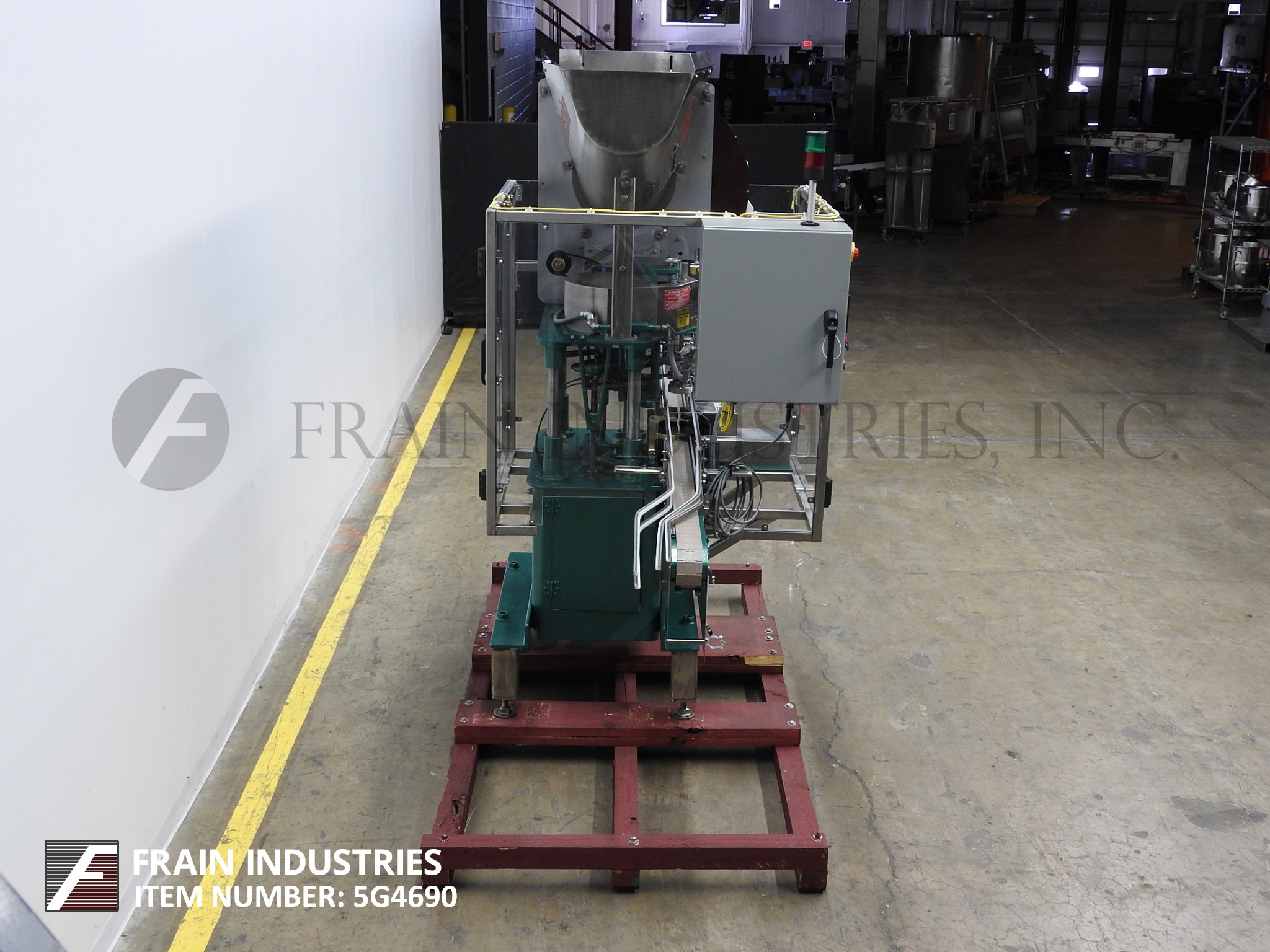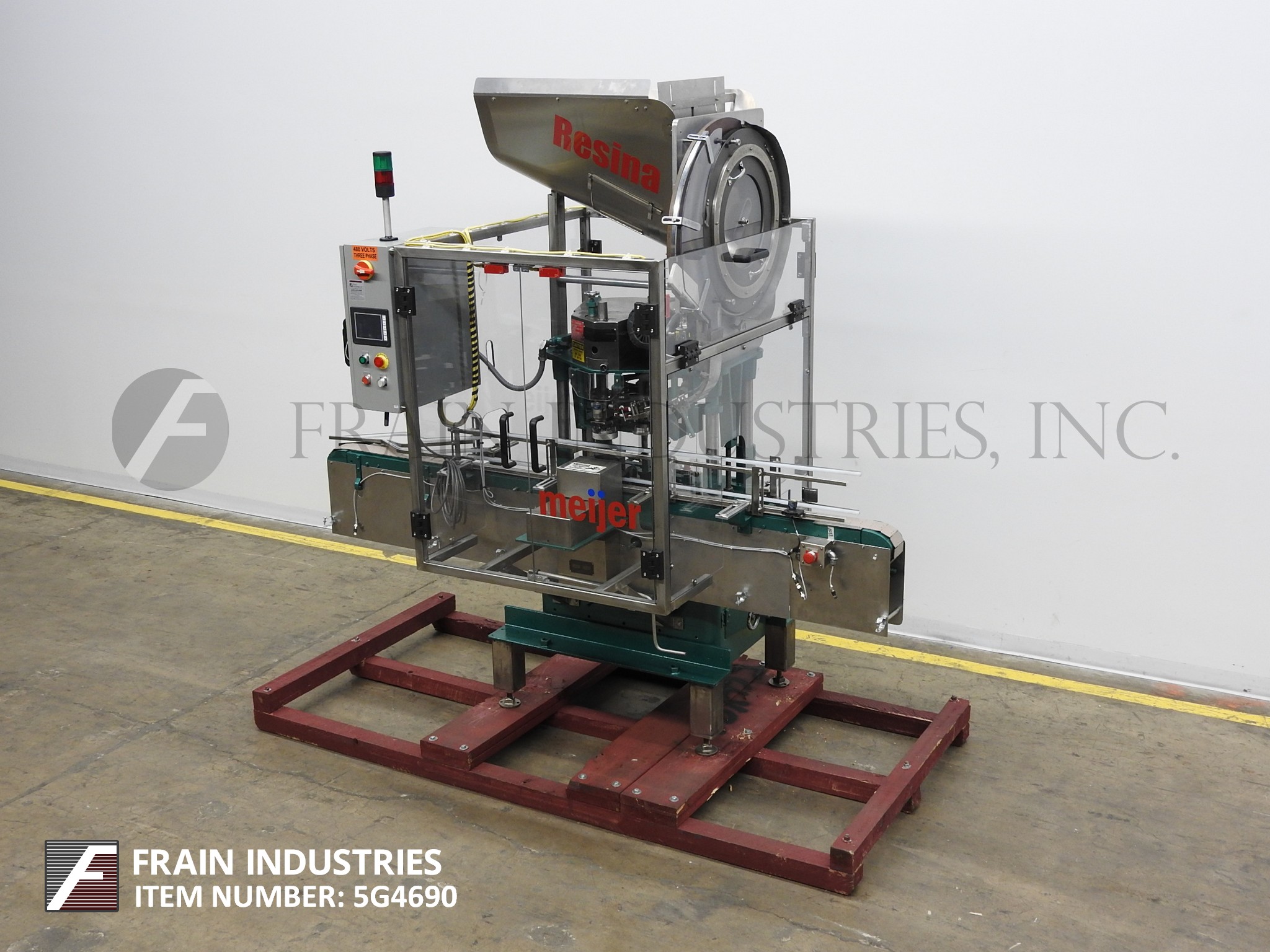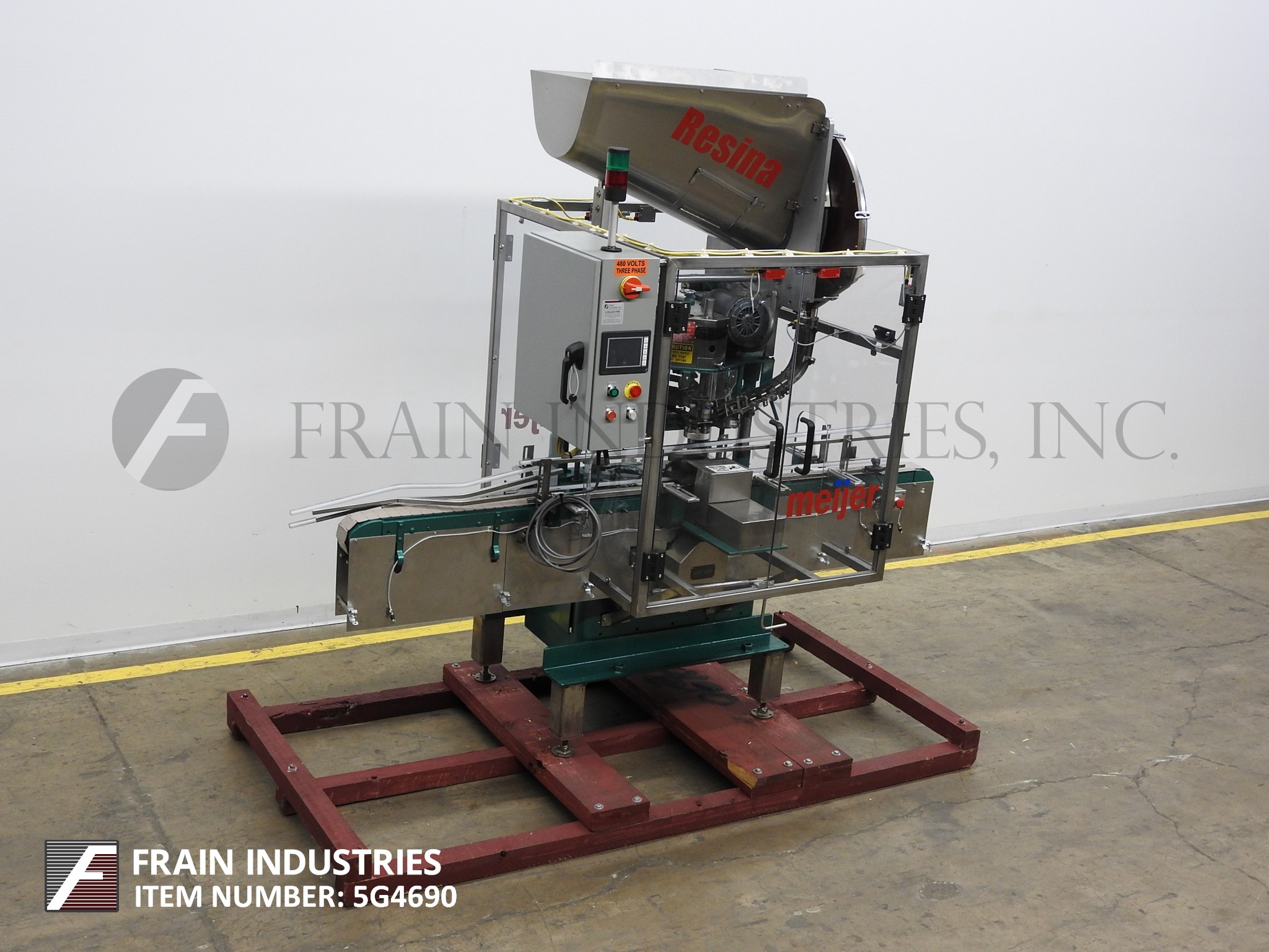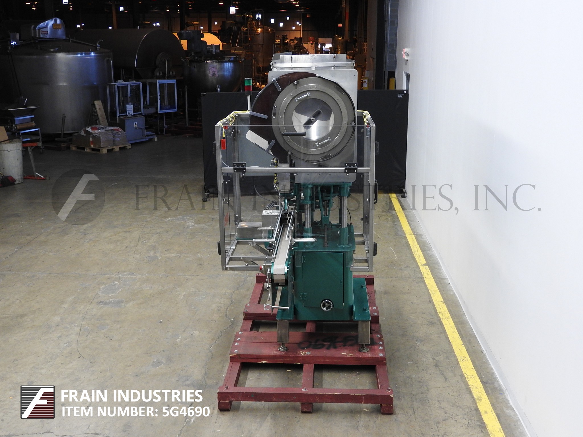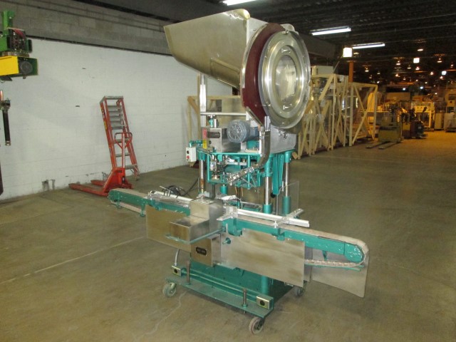 返回所有设备RESINA,S30型,自动,单头吸盘式的封盖。从每分钟10到30个集装箱额定 - 取决于材料,应用和设备配置。盖尺寸范围:13毫米70毫米。容器尺寸范围:最多6" 的直径; 2-3 / 4至13" 的高度。配备有96" 长×3-1 / 4" 宽,塑料容器Delran输送机,料斗盖用针轮分选机,帽溜槽,帽按钮,传递鞋,双容器夹持器和单头卡盘样式帽tightner。与开始/停止按钮控制的控制面板。改变适应尺寸范围所需的部件。