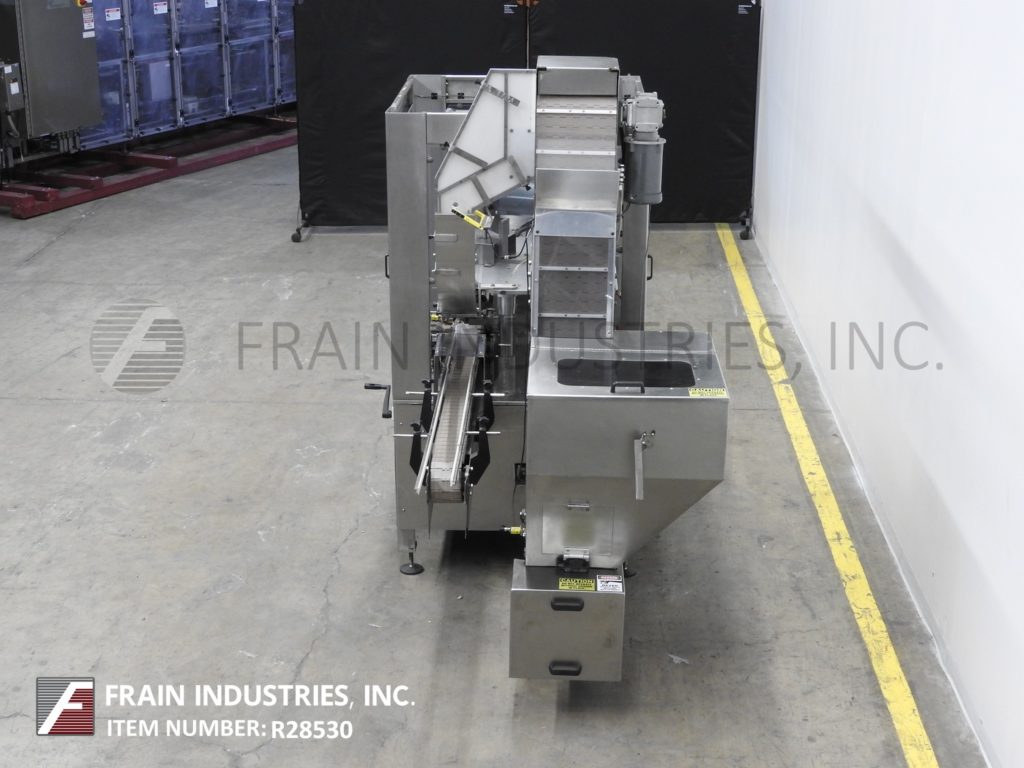 返回所有设备Resina Model N51Hes-12,单头,不锈钢,左右,带盖电梯的Chuck Capper。每分钟10到40个容器 - 取决于材料和应用。所有不锈钢结构。帽尺寸范围:70mm至120mm。容器尺寸:能够处理多大尺寸和形状容器,最高可达1加仑(具有适当的变化部件)。配备型号HES帽子料斗和馈线有30英寸长x 26“宽x 30-1 / 2”深帽料斗,带有翻盖盖和60“长x 12”宽倾斜盖式盖子进料输送机,带1/2“高凸耳设置在6“中心。120”长x 4-1 / 2“宽塑料delron桌面容器输送机,可调节导轨。夹具有盖帽,转印鞋,双侧带集装箱夹具,单头,空气驱动夹头,没有容器/没有帽和摄像机感应视觉传感器,手曲柄高度可调节和互锁安全保护。控制面板具有PLC控制器,带有触摸板控制,操作员接口,带有启动,停止和e-stop按钮。安装在重型不锈钢底座上带水平腿。