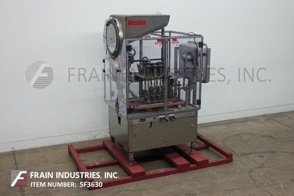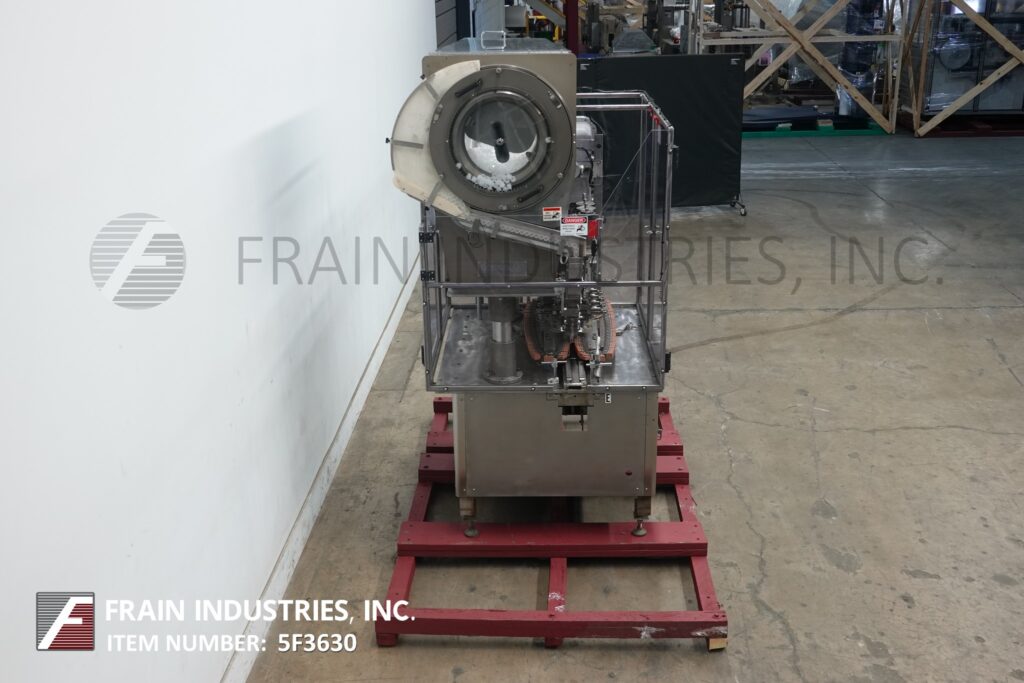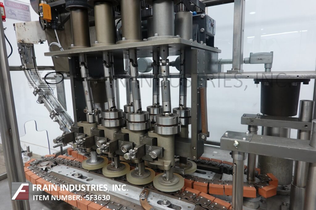 Back to All EquipmentInline, stainless steel, 4 station, 8 spindle capper rated from 120 to 300 containers per minute – speeds depending on materials and application. Cap size range: 10mm – 70mm. Container size range: up to 1 gallon. Equipped with a 130" long x 4-1/2" wide Delrin conveyor, H-26 cap hopper/sorter, side gripper belts, and interlocked safety guarding.