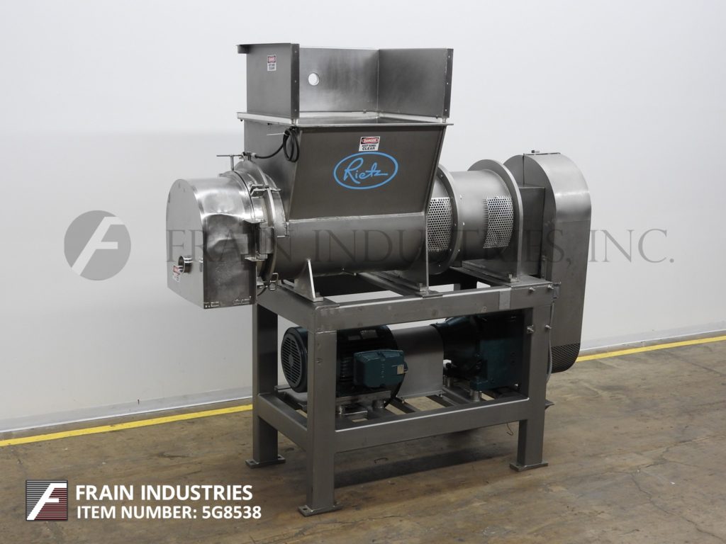 返回所有设备Rietz,Re-24型,不锈钢除外脱机,用于研磨冷冻,部分冷冻或完全融化的产品40磅的产品。并从40磅到每小时30,000磅 - 取决于材料,应用和机器配置。配备37英寸长x 32“宽x 37”深不锈钢产品料斗,(9)3英寸宽x 10“高锤叶片在7” OD轴上和(8)5“长x 7”高固定砧,24“ ID旋转产品还原端口,旋转打开,螺栓向下盖,还原屏幕(每次应用更改零件)和(6)用55英寸地板间隙切断刀片,链条链条链条链条链条链条,链轮60 hp的电动机驱动器,并带有安全保护。安装在(4)腿螺栓上,向下不锈钢底架。