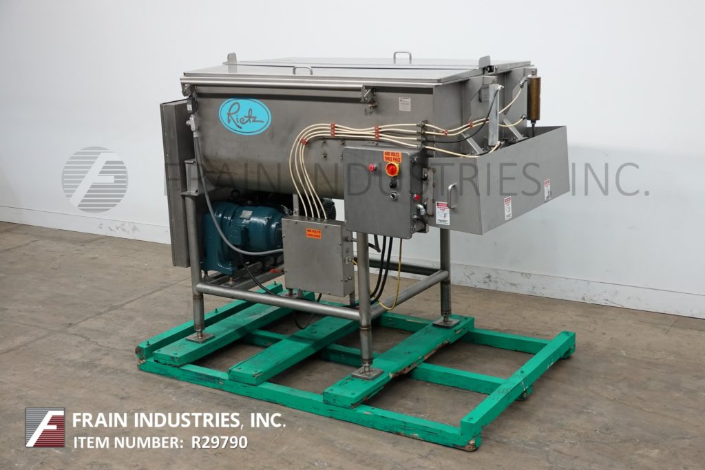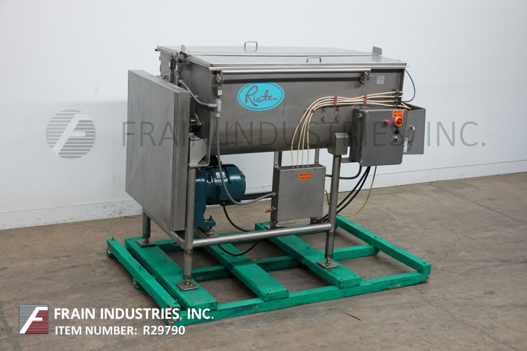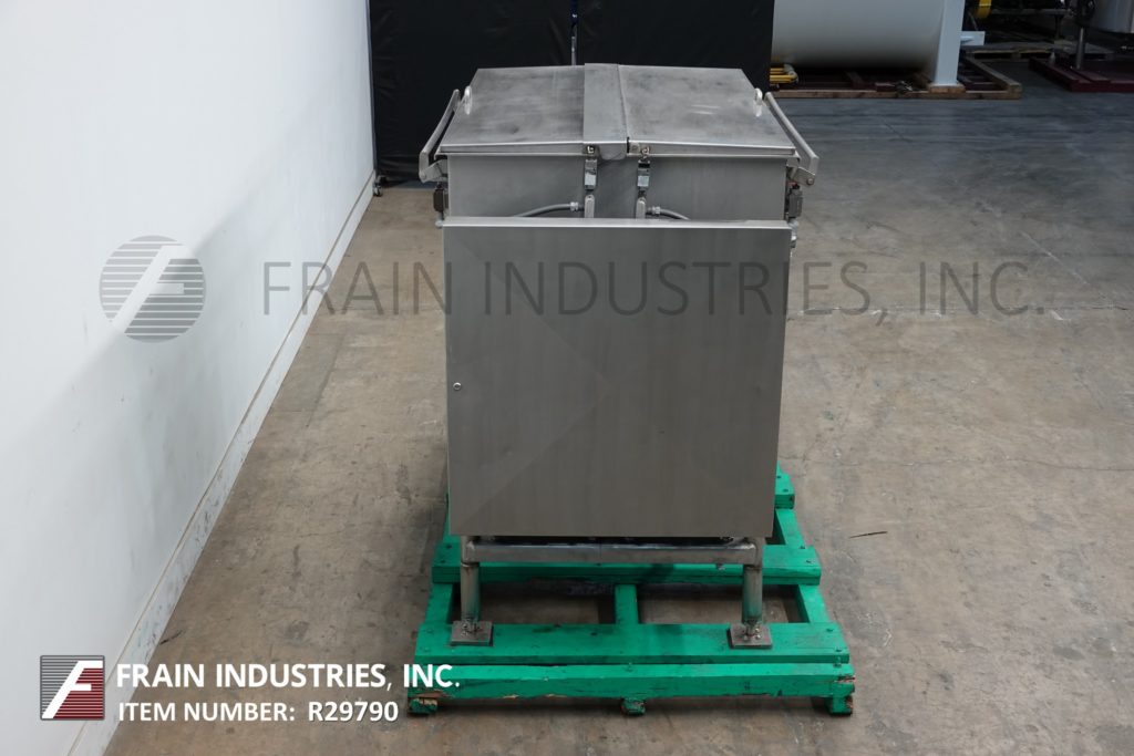 返回所有设备Reitz,型号不锈钢,双桨式搅拌机,每小时磅产品 - 取决于材料和应用。混合室内调;72“长度;宽度; 48”;30“深入使用双重翻转盖。配备双混合桨,设置在3”OD轴上,具有1-1 / 2“OD辐条。双7-1 / 2 HP双链电机驱动器,带有安全防护和双重空气运行,摇摆,最终底部产品放电门,30“落地间隙。控制面板开始。停止,e-stop按钮控件。安装在(4)腿基框架上。