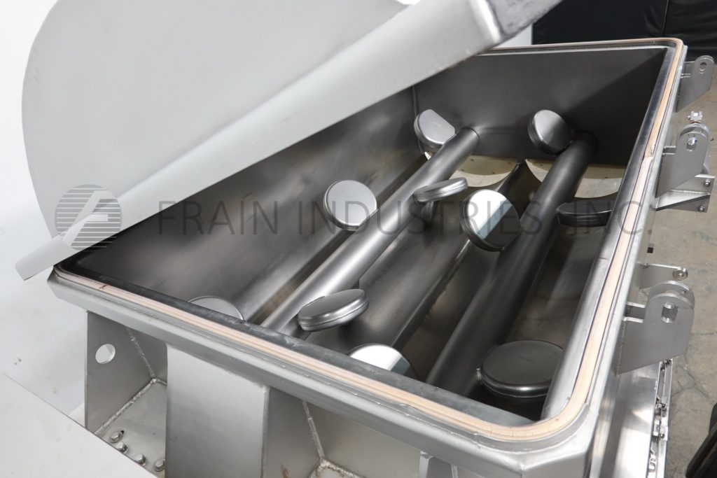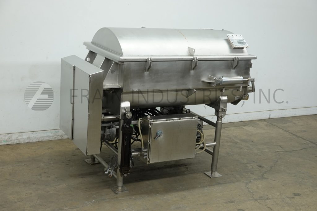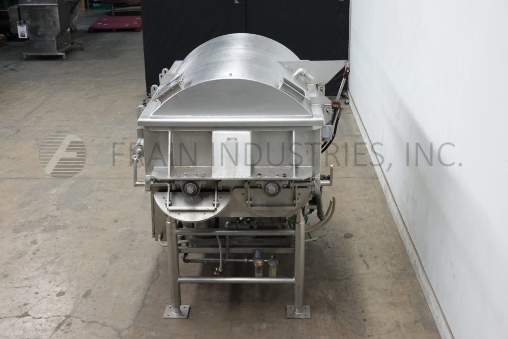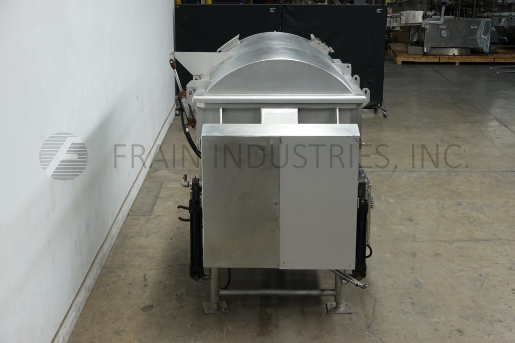 回所有设备RMF模型VMM2500和52ft3总计(42ft3工作容量)、304不锈钢、双槽拼接器和磅输出时-视材料应用而定配有2条混合槽内维度78宽度45分深度32九大宽x2厚不锈钢板OD轴、液压电机驱动器(1)5HP吸尘泵并配有双充气卸载门43'地面通关控件面板按键启动/停止前向/逆向控件爬上不锈钢架