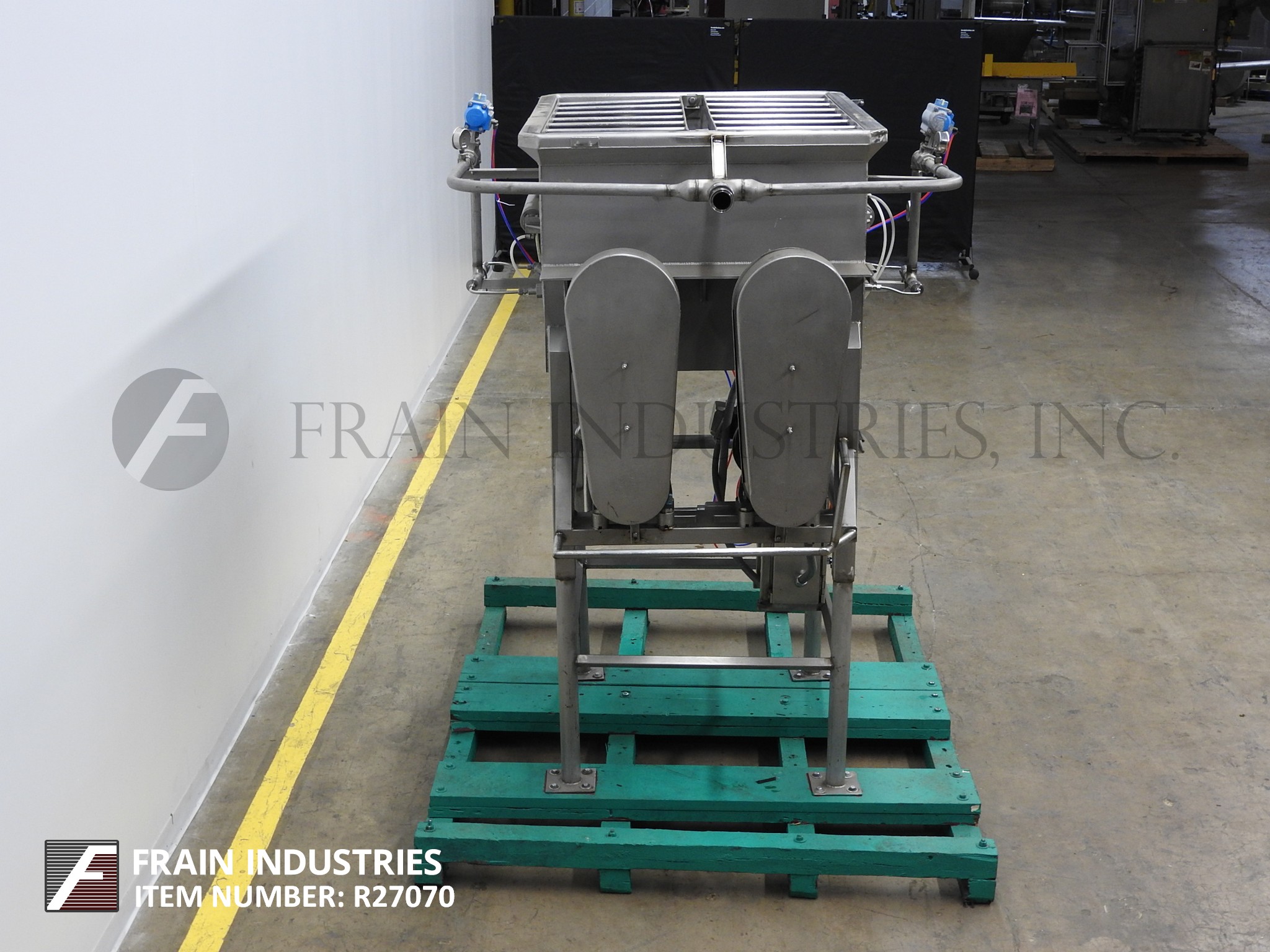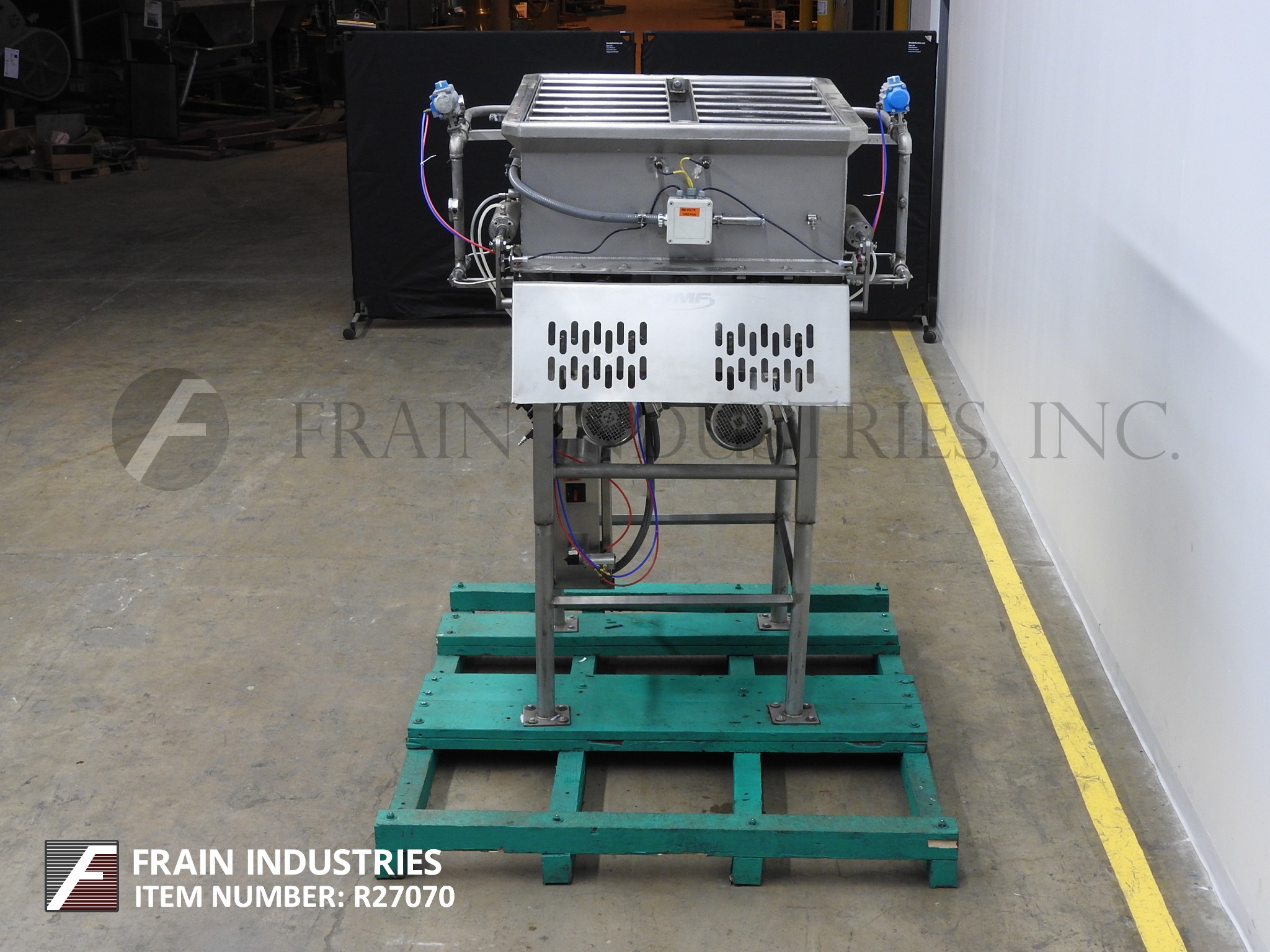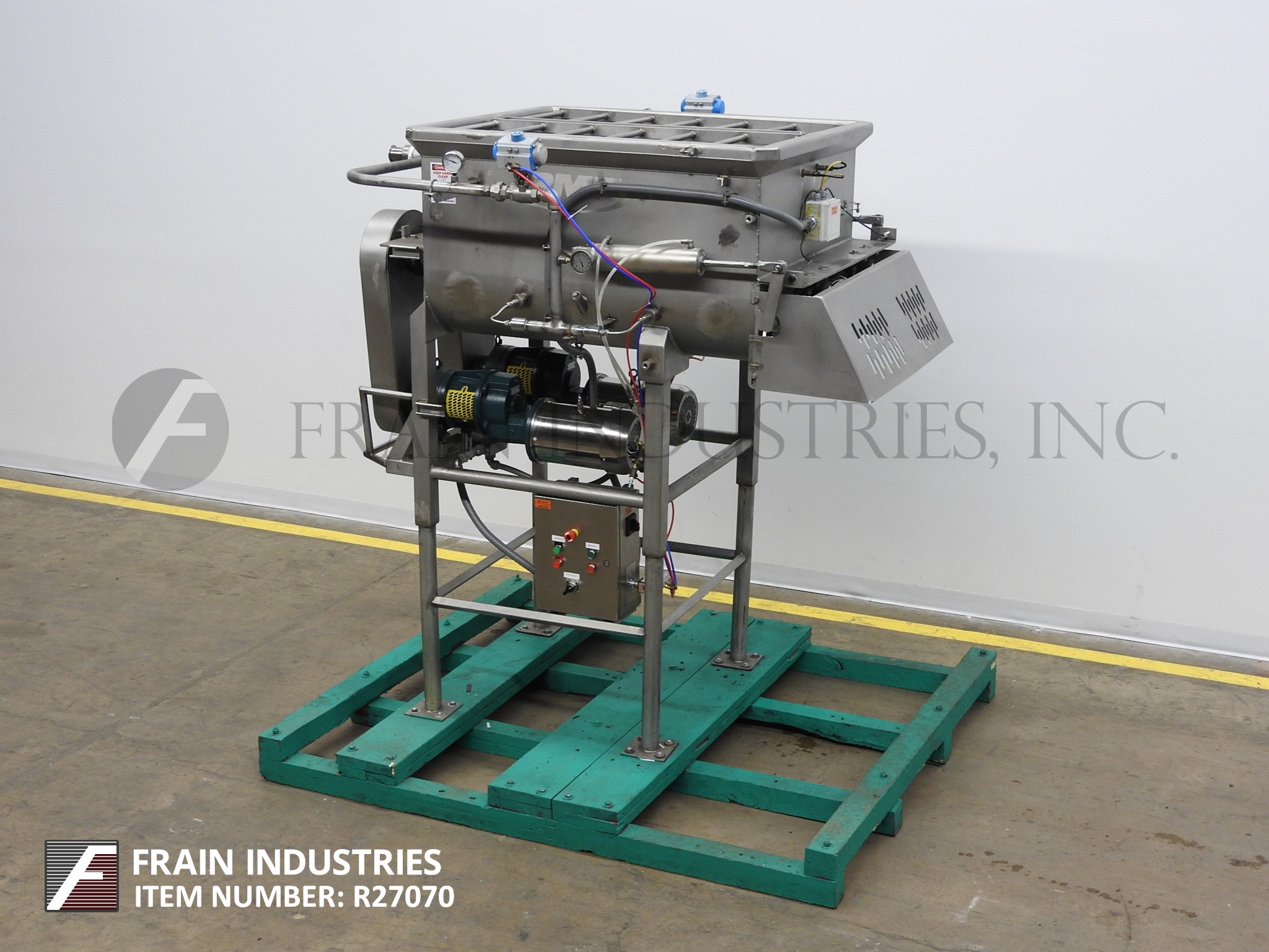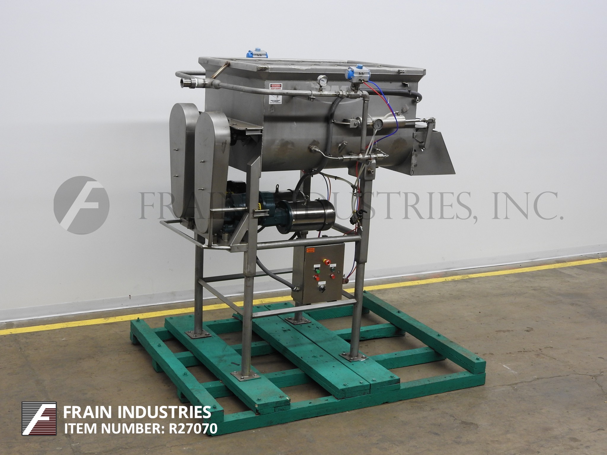 返回所有设备RMF,型号28-0750,共22立方英尺(15立方英尺可操作),双桨叶混合机与304不锈钢接触部件。内部混合室尺寸:45英寸长度;36“宽;26”的深度。配备抛磨碎的封面,(2)2¼“直径电动机轴/ 3½”直径搅拌轴与7 x 5”不锈钢桨独立由3 Hp驱动器,(2)15“宽x 5”高端排放与气动封面和52“地面间隙,(4)内部液体喷雾喷嘴(1)2”提供的《不扩散核武器条约》。安装在低碳钢(4)腿基础框架。