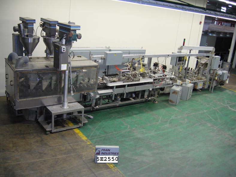 返回所有设备罗伯茨包装型号C1000,3-升,自动,水平,连续运动,形式,填充和密封机,速度从50至200个每分钟速度 - 取决于材料和应用袋尺寸范围:4“至7-3 /4“宽度x 6”到12“高度x高达4-1 / 2”的宽度圆盘底部,配备(3)Mateer Burt模型螺旋填充器,旋转填充炮塔(14)9-1 / 2)Long x 6“宽x 15”深锥形产品漏斗和(42)袋夹夹具。伺服驱动,产品捕获槽下面的螺旋辊送料器,并旋转立式密封钳口,PLC控制器,带LED显示屏,互锁屏障保护和e-stops。安装在重型框架上。最后在食品服务操作中运行。