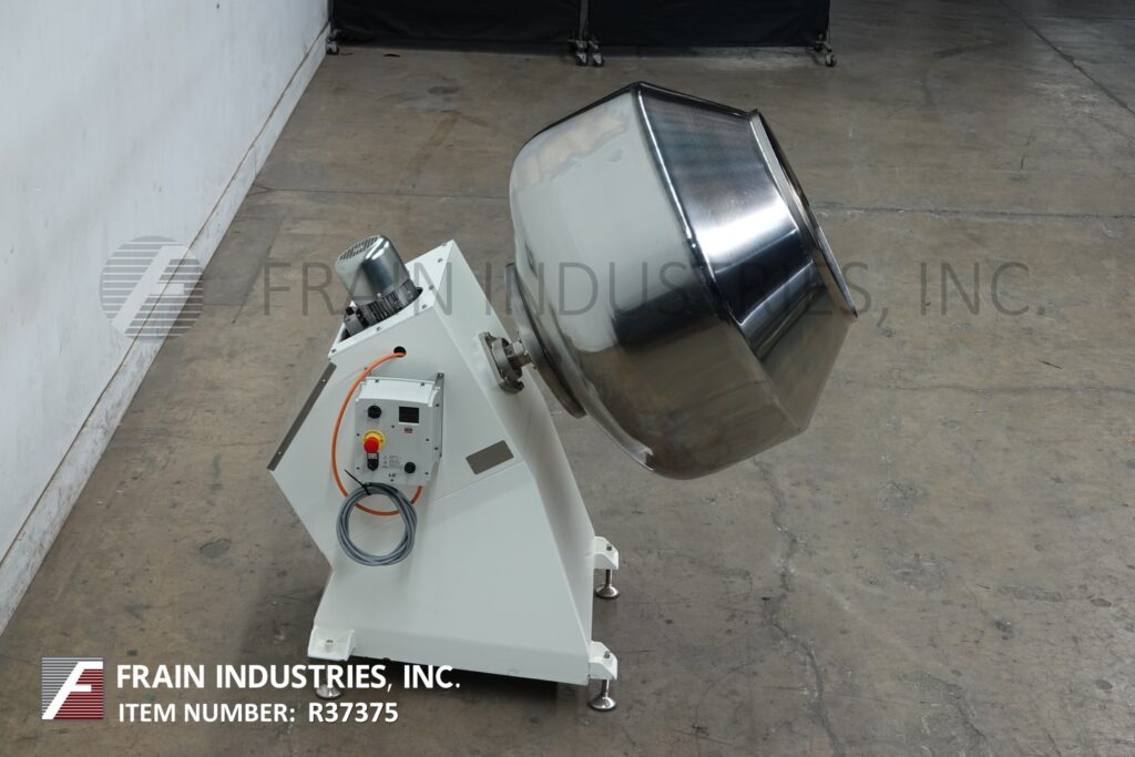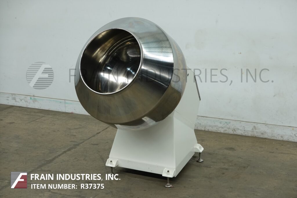 Back to All EquipmentRollerMac, 44" stainless steel, angular shaped, coating pan. Pounds of product per hour – depending on materials, application and operator dexterity. Equipped with 44" diameter x 32" deep coating bowl, 25" diameter product access port with 44" ground clearance and powered by a 1½ Hp drive. Mounted on painted base frame.