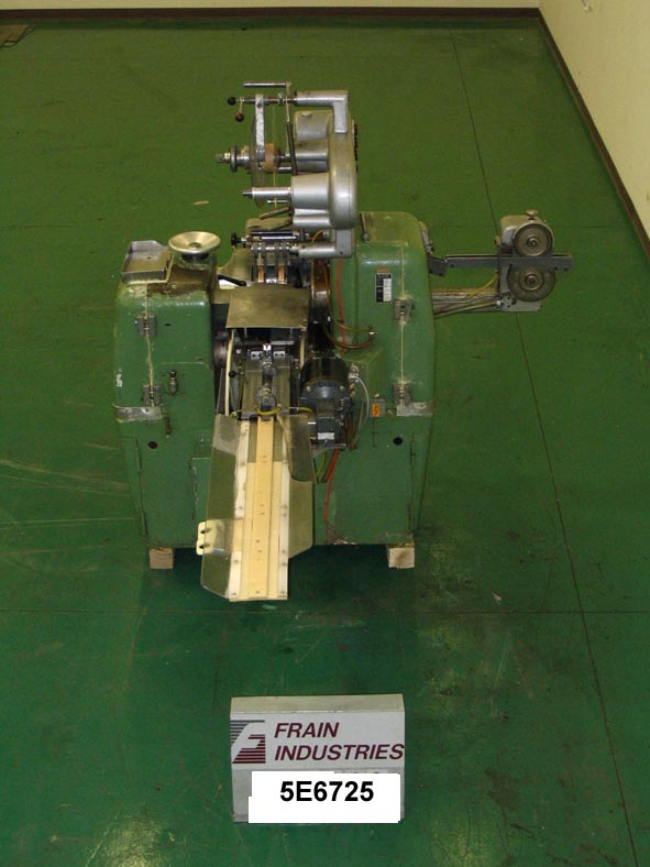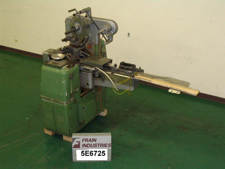 返回所有设备全自动,高速,双点端折成型/切割/包装机,可根据材料和应用情况,每分钟400 - 1000片。产品:长25 - 45mm,宽12- 25mm,厚5 - 15mm。设有三个成型轮与选择开关调整,热密封站,和双车道步行梁加热出料。配备Allen Bradley SLC 5/01 CPU控制器,Reliance Electric交流驱动控制器,独立控制面板,E-stop,状态指示灯,樱桃/橙色/草莓/柠檬指示灯,自动vbr驱动控制,photoeyes用于产品展示,包装膜卷高达3"W, 14"直径,和控制F1纸(开始/停止)和H1纸(开始/停止)。彩钢框架直角机。最后运行21mm长x 21mm宽x 10mm厚的Starburst糖果在69mm(2 3/4“)宽x 90mm(3.5“)长的包装。