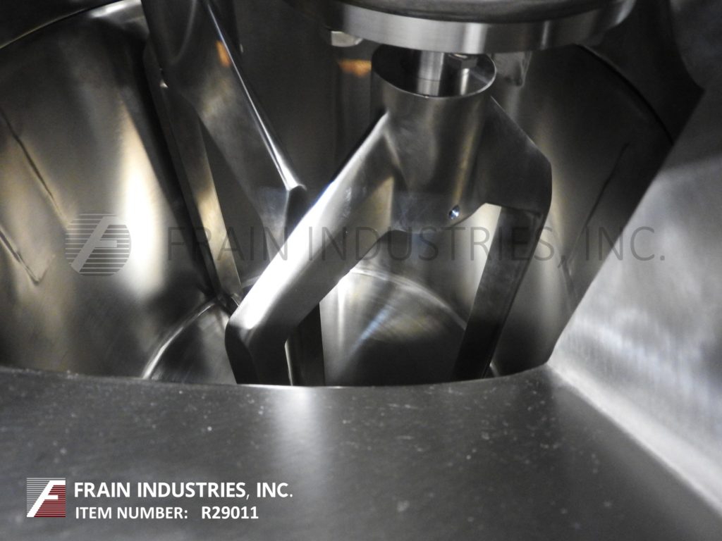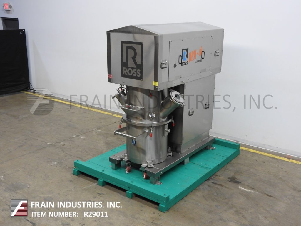 返回所有设备Ross Model DPM-40系列LLL,40加仑,316不锈钢,卫生设计,大气,双行星批量搅拌机,每小时磅产品 - 取决于材料和应用。配备液压升降机搅拌头并具有15个HP电机驱动器,自包含的加压空气/油箱,具有干燥空气,双矩形混合刀片,适用于湿润或干混的低粘度应用,其容量为5至40加仑并评定了10,000至800万CPS。8“OD铰接视觉/充电端口,带有6”OD TRI三叶草雾化喷嘴端口,(2)2“OD卫生顶部和3”OD光端口。控制面板具有PLC控制器,带混音器启动,停止,速度降低,增加,提升,升高,较低,亮,熄灭,截止,停止和电子停止控制。24英寸直径; 24英寸直壁不锈钢混合可以与脚轮。安装在重型不锈钢可插入的底部框架上。